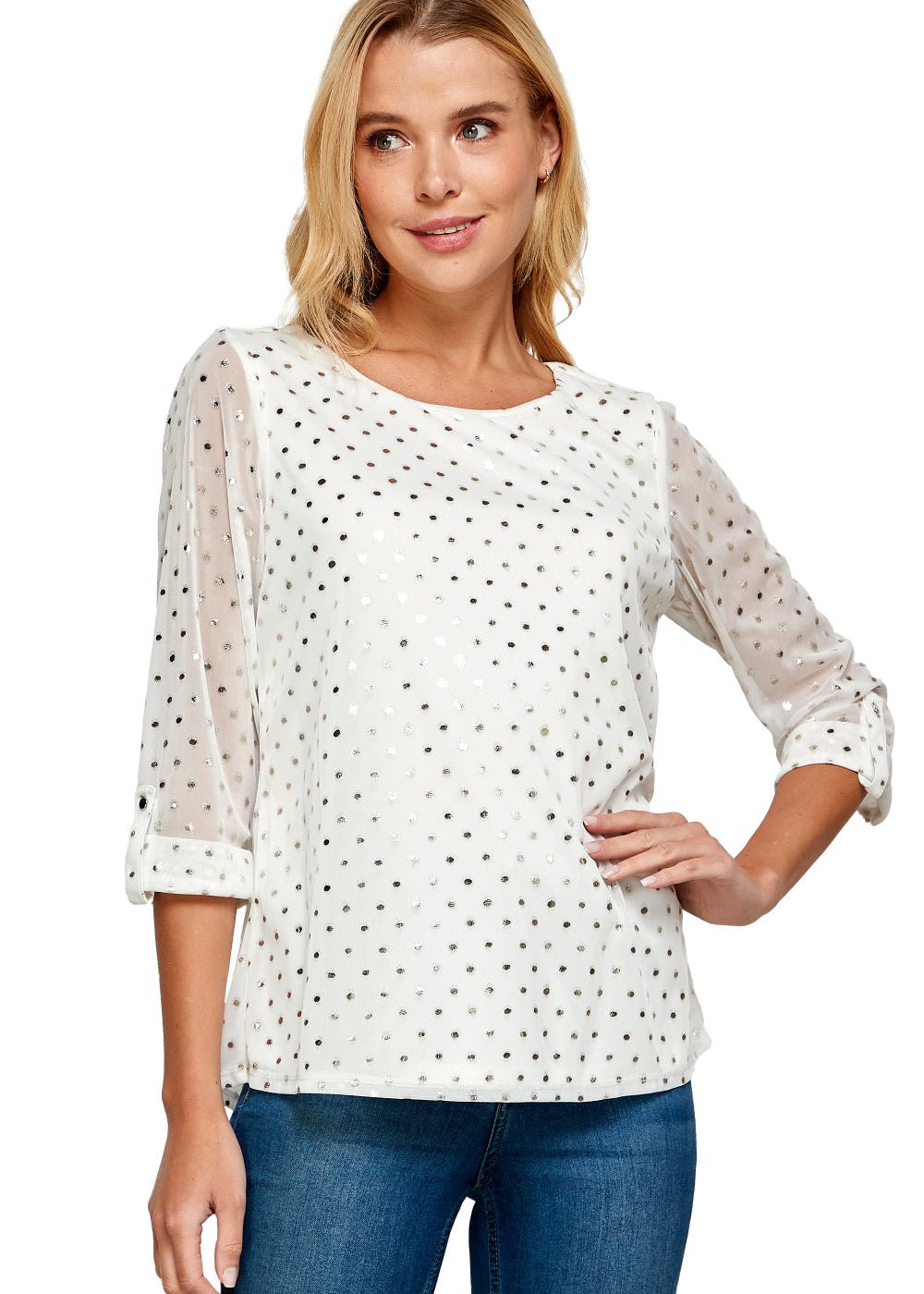 Roz & Ali 3 Quarter Button Tab Sleeve Lined Blouse