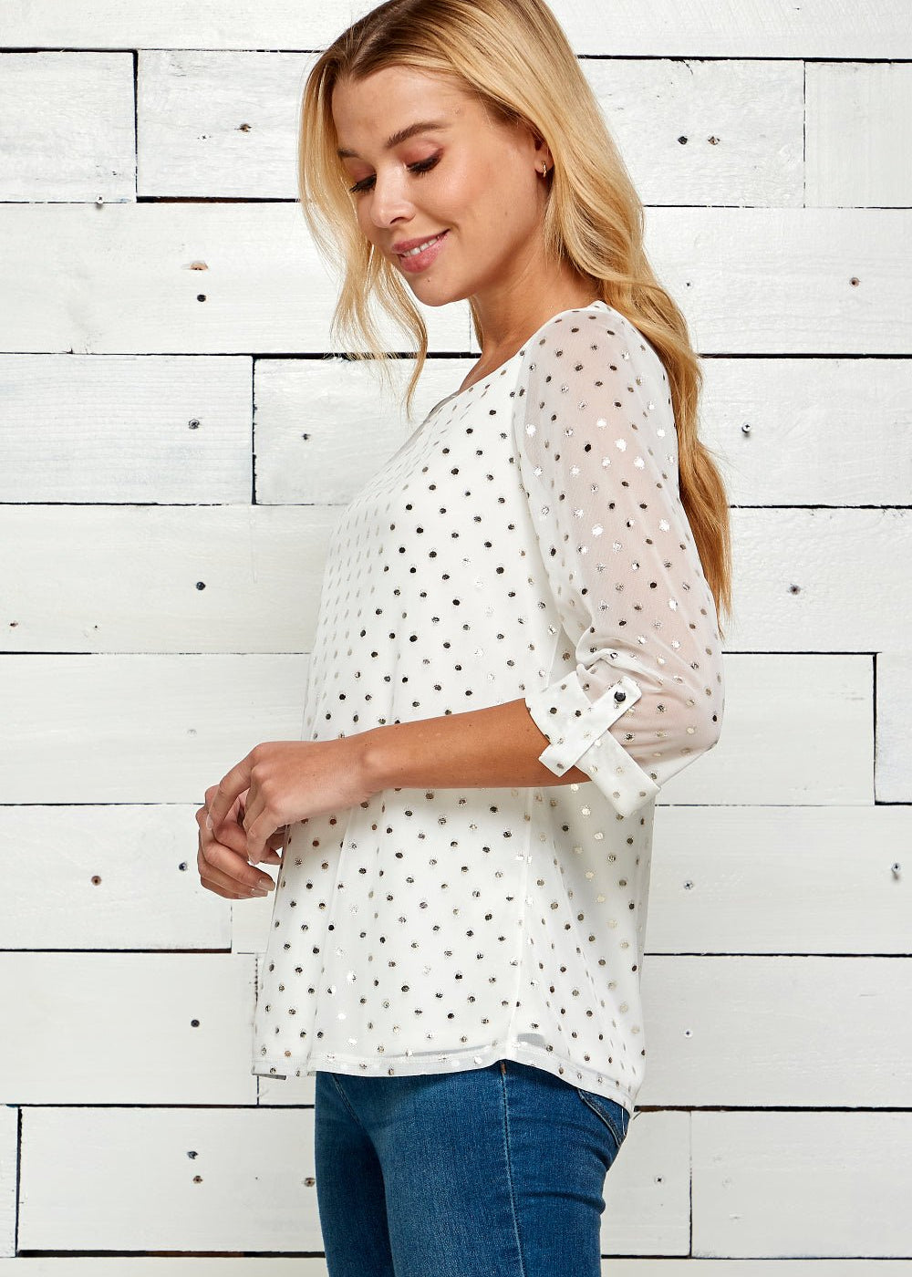 Roz & Ali 3/4 Sleeve Embroidered Top