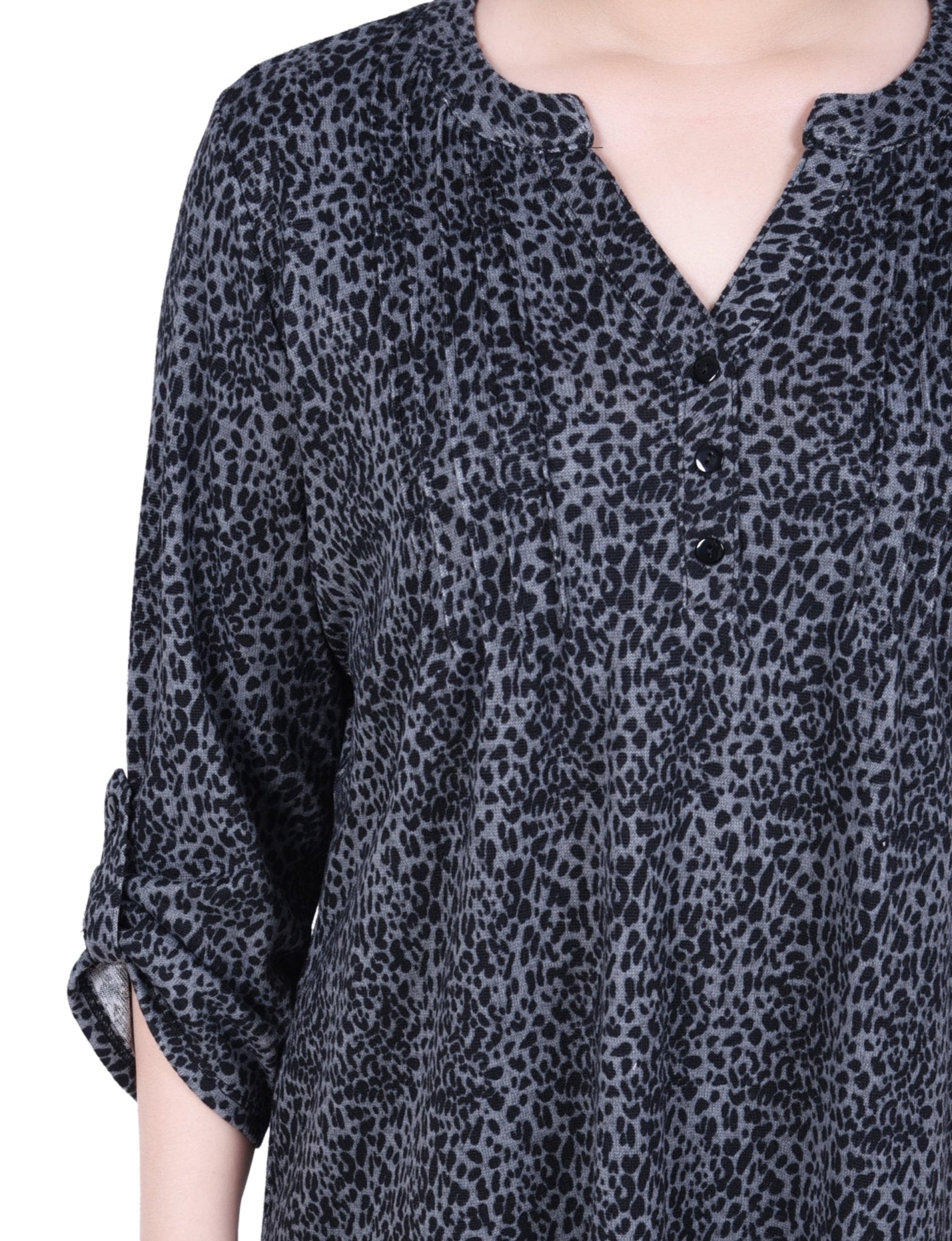Sara Michelle 3Qtr Elastic Sleeve Trim Front Neck Border Print Blouse - DressbarnShirts & Blouses