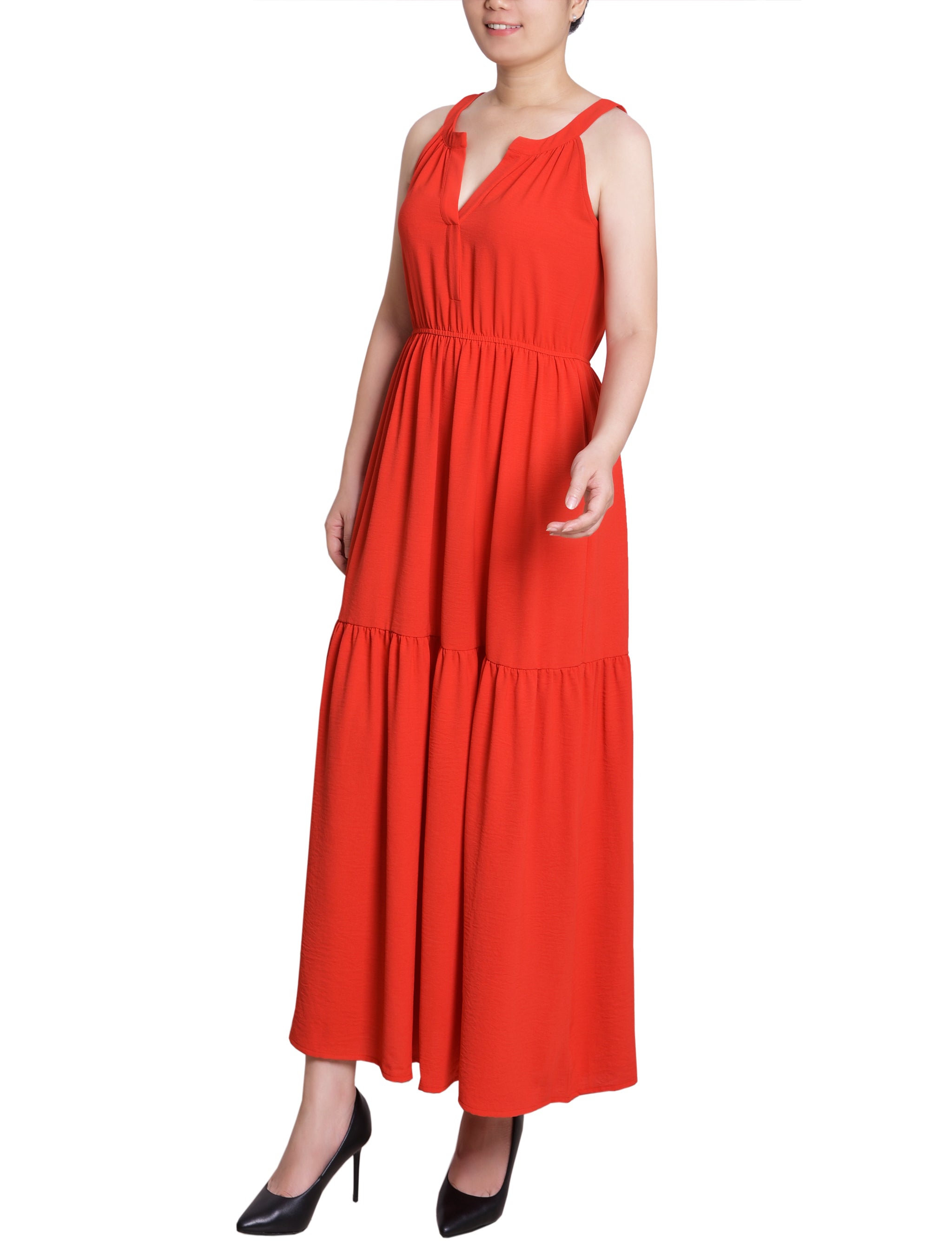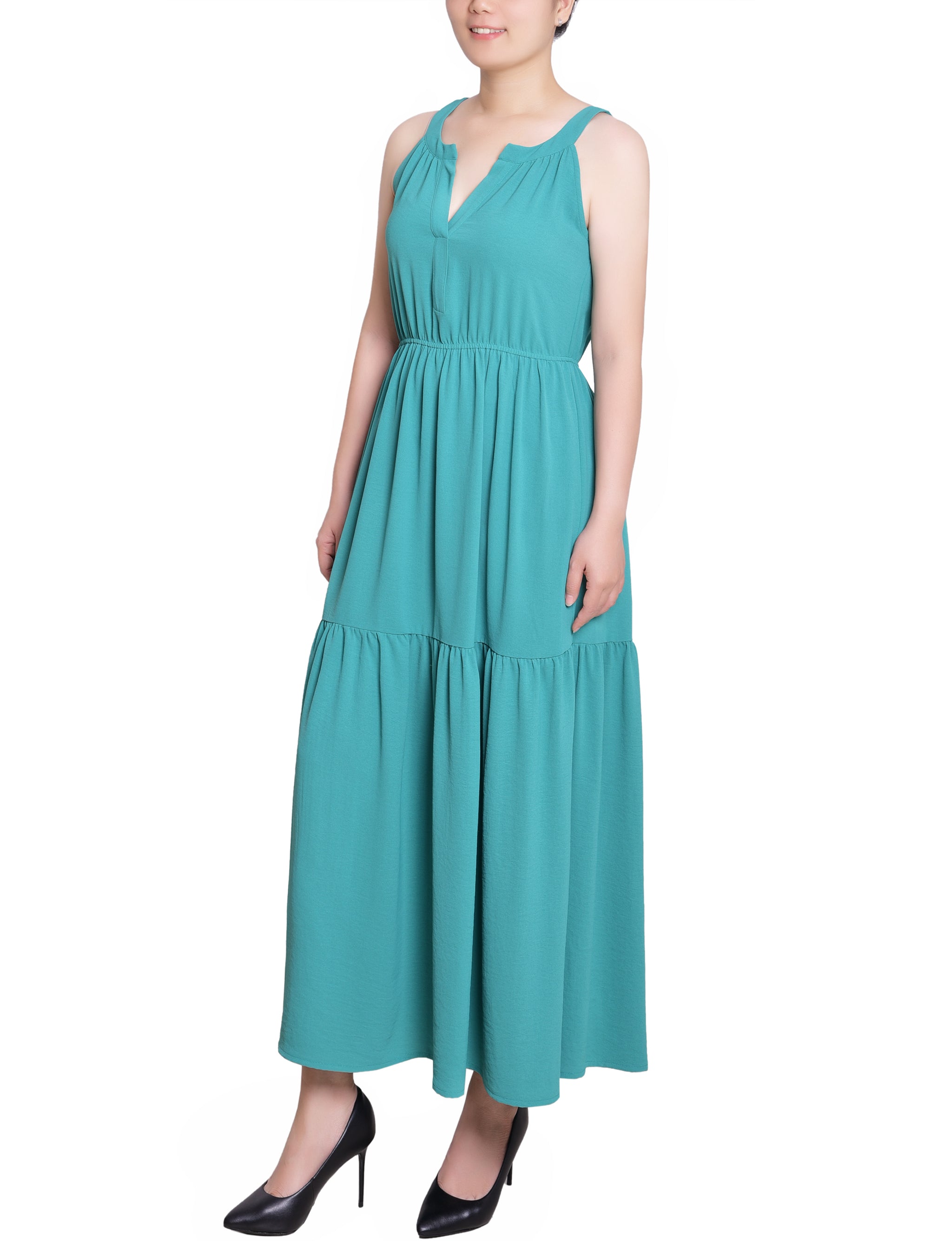 Yellow 3/4 Tabbed Sleeve Y Neck Blouse - Plus Size