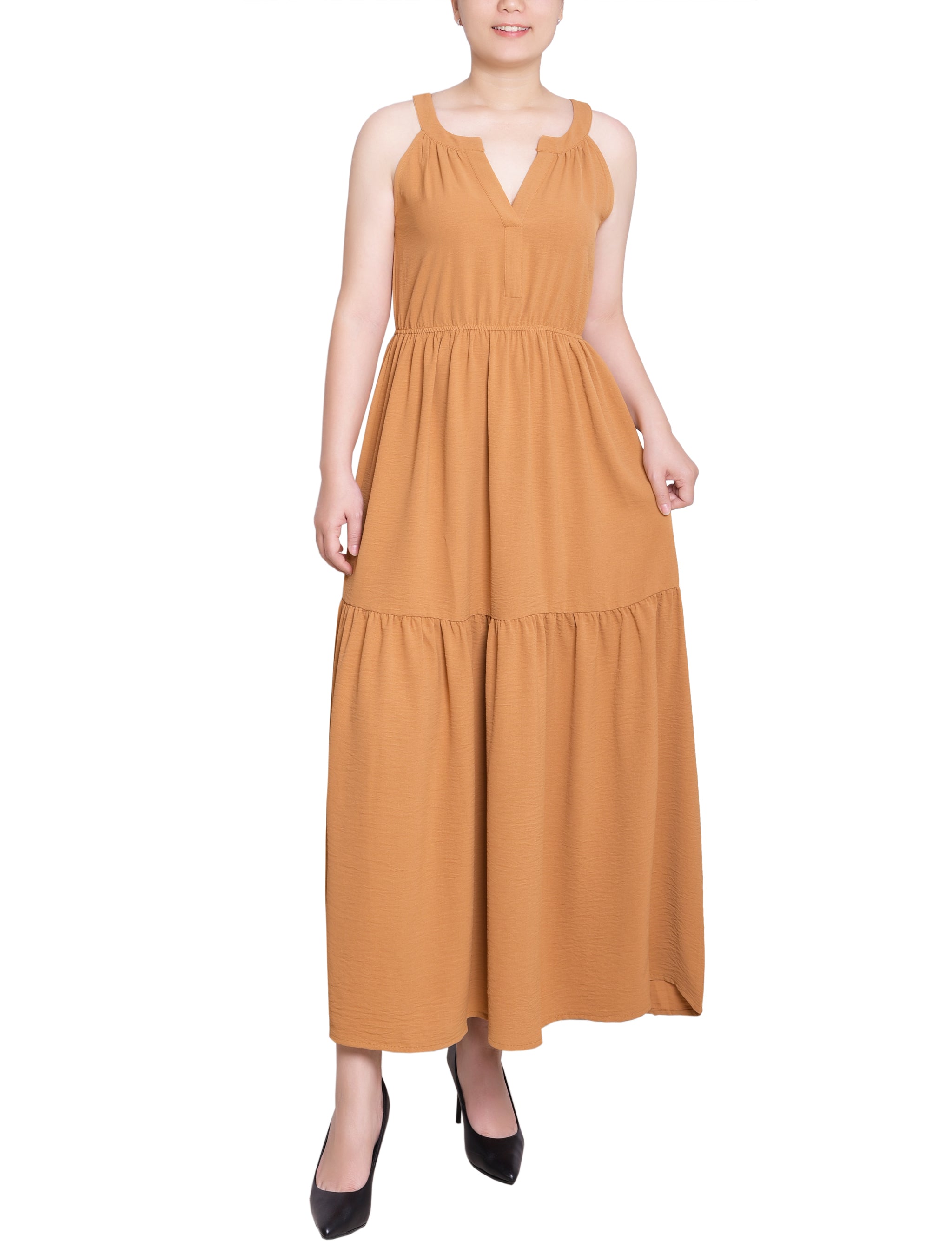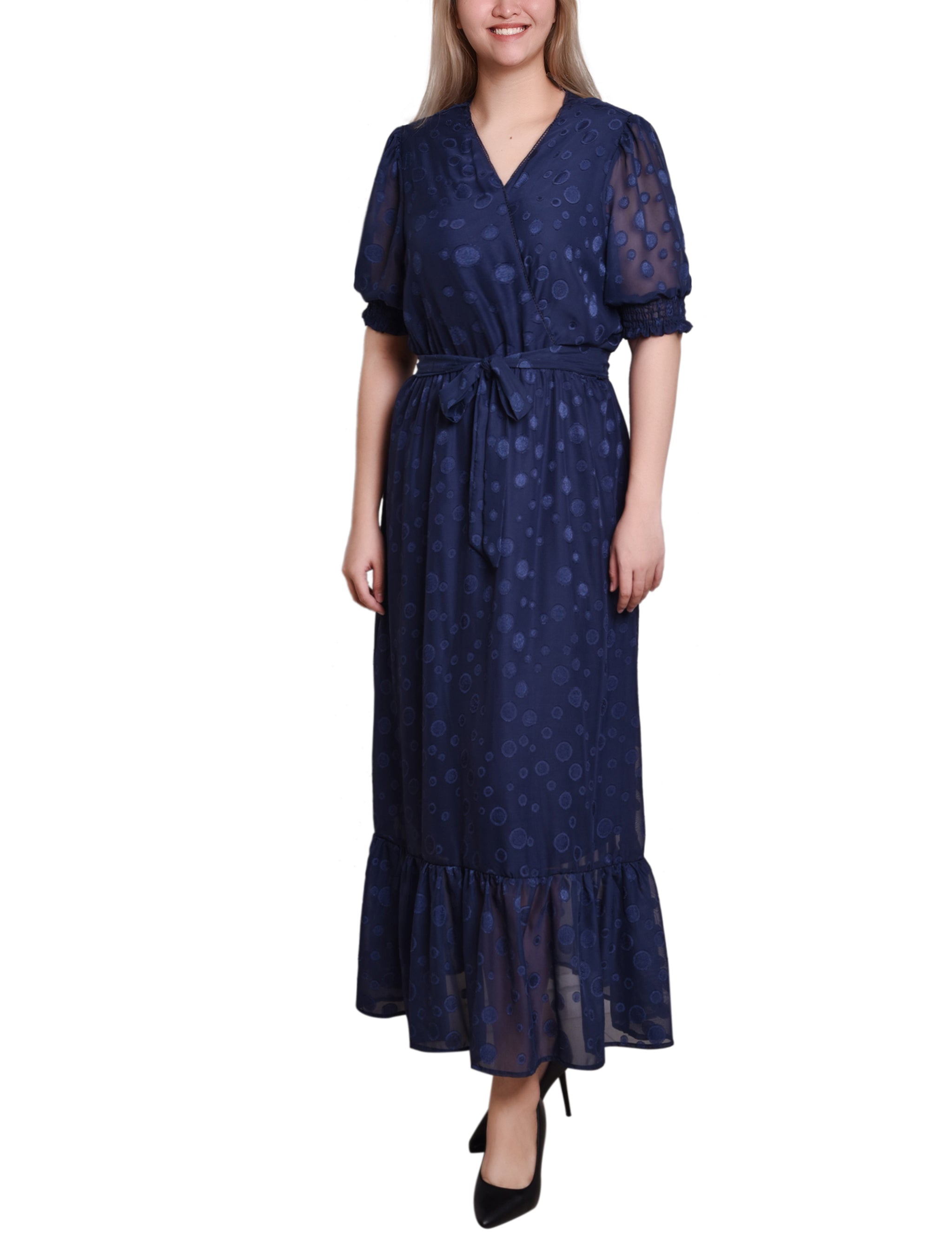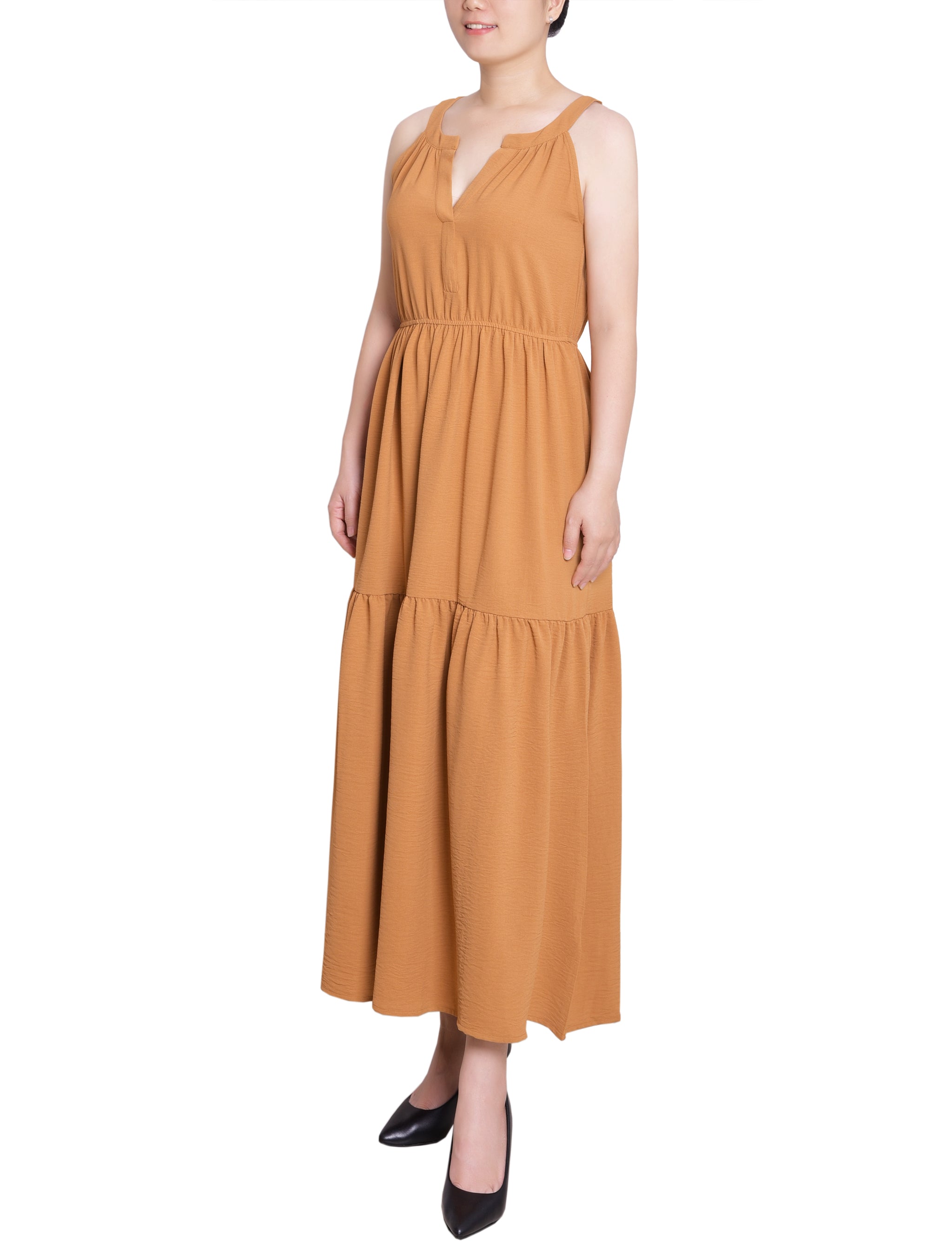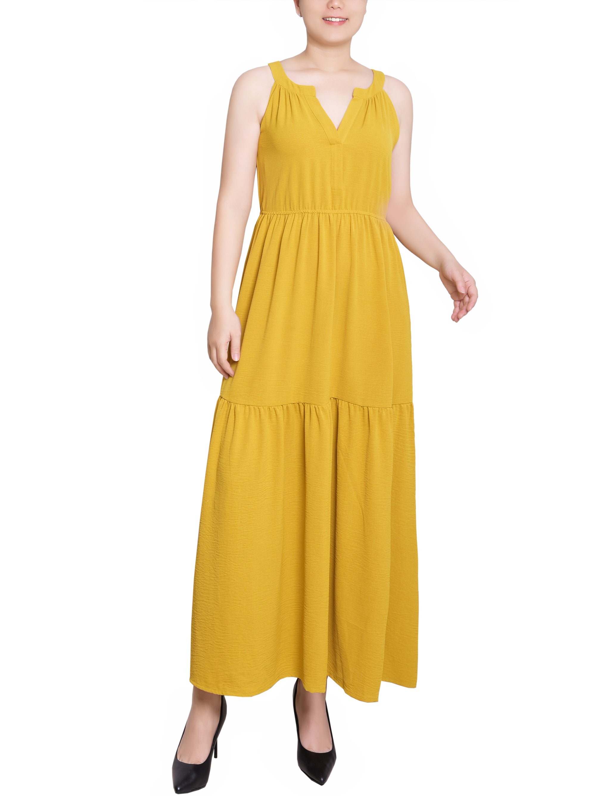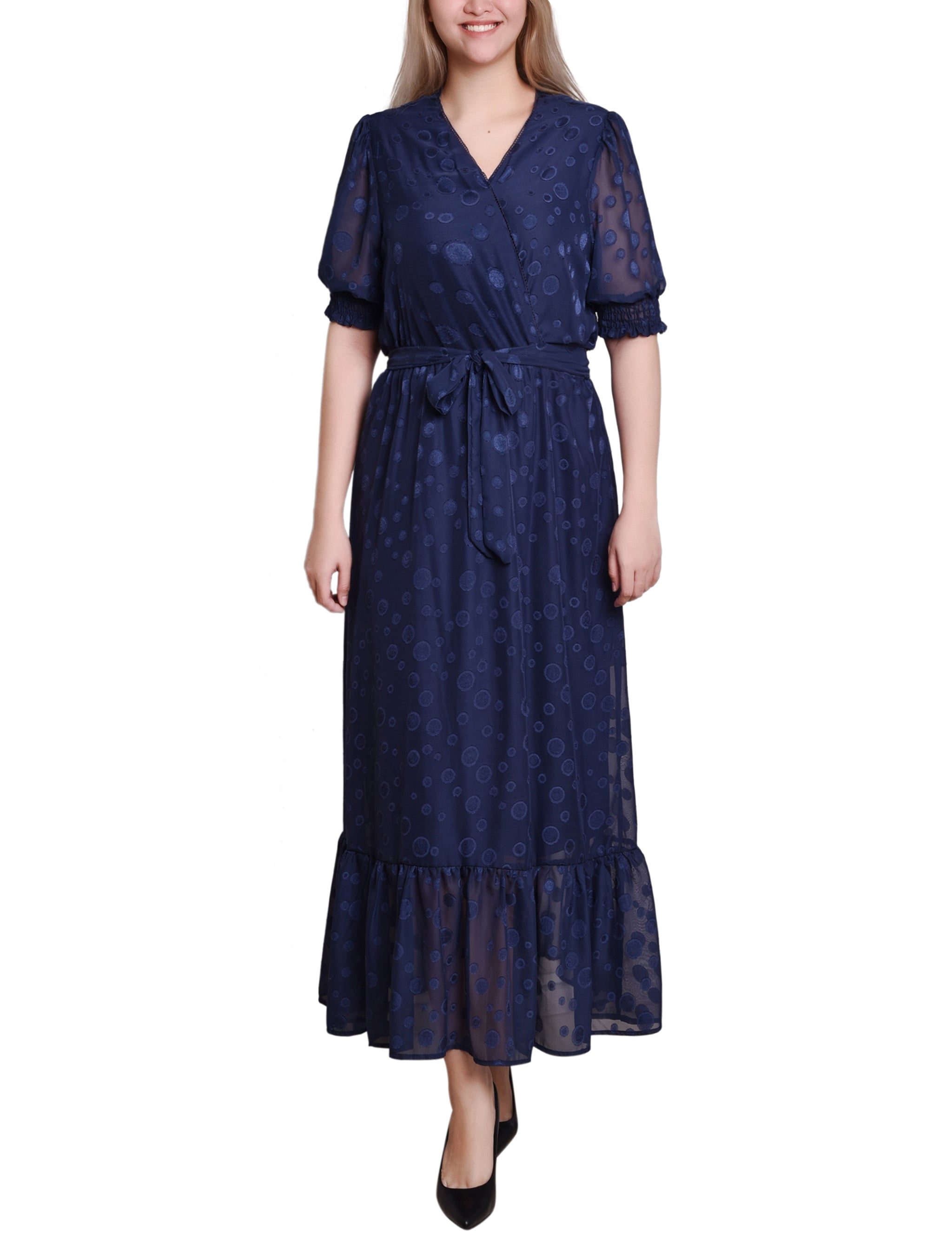 Yellow 3/4 Sleeve Dobby Smocked Waist Dress - Plus Size
