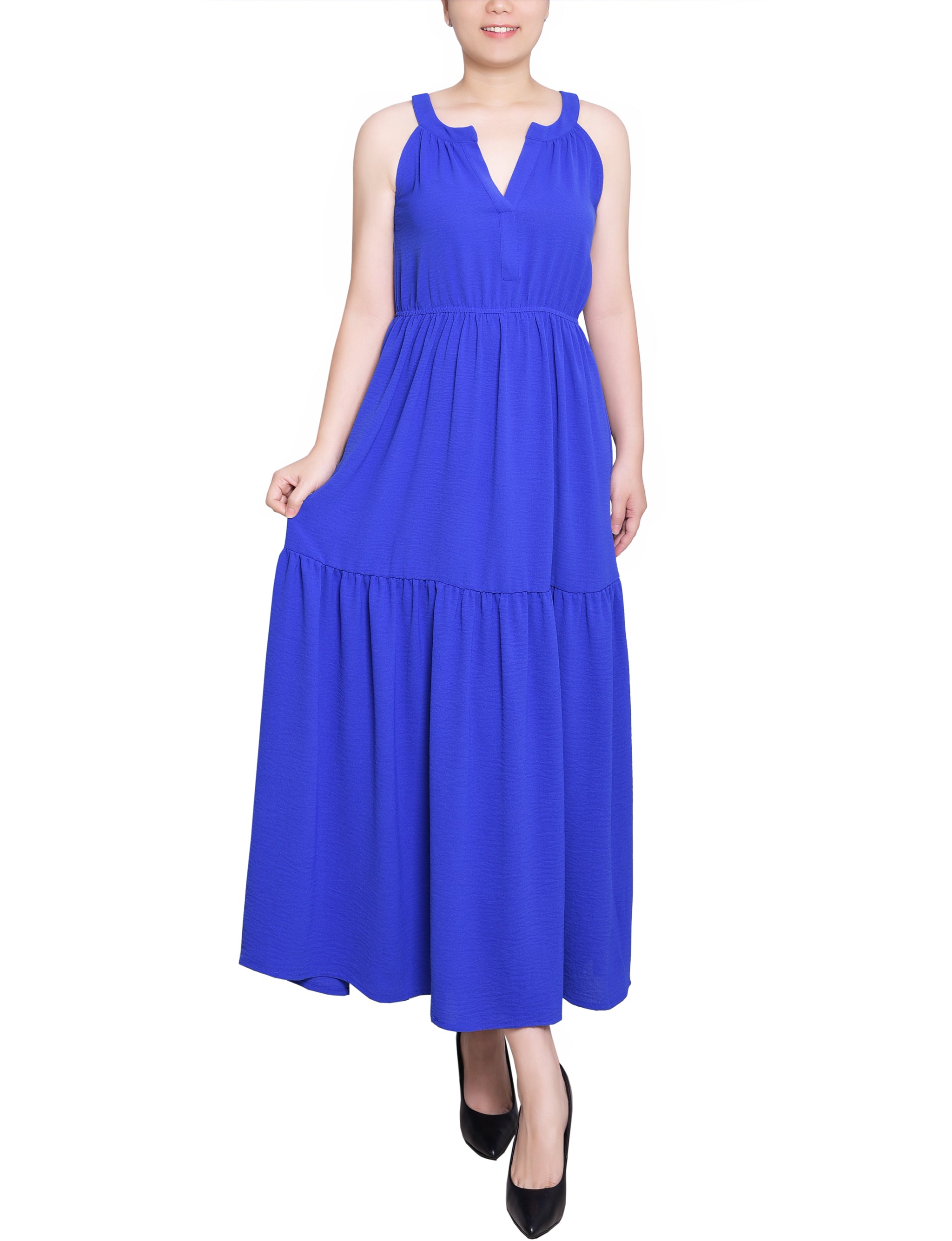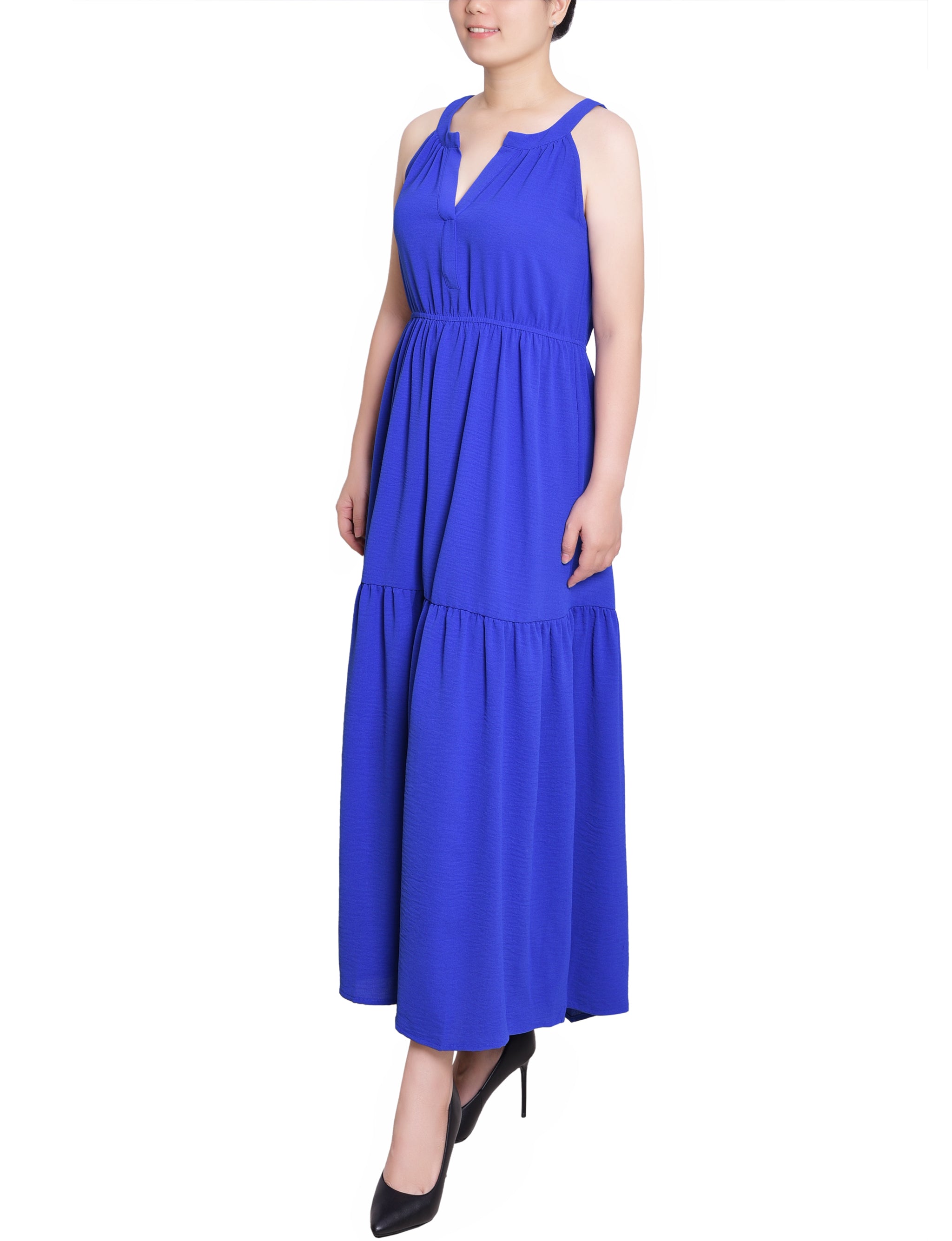 Blue Long Square Abstract Maxi Skirt With Sash Waist Tie - Petite