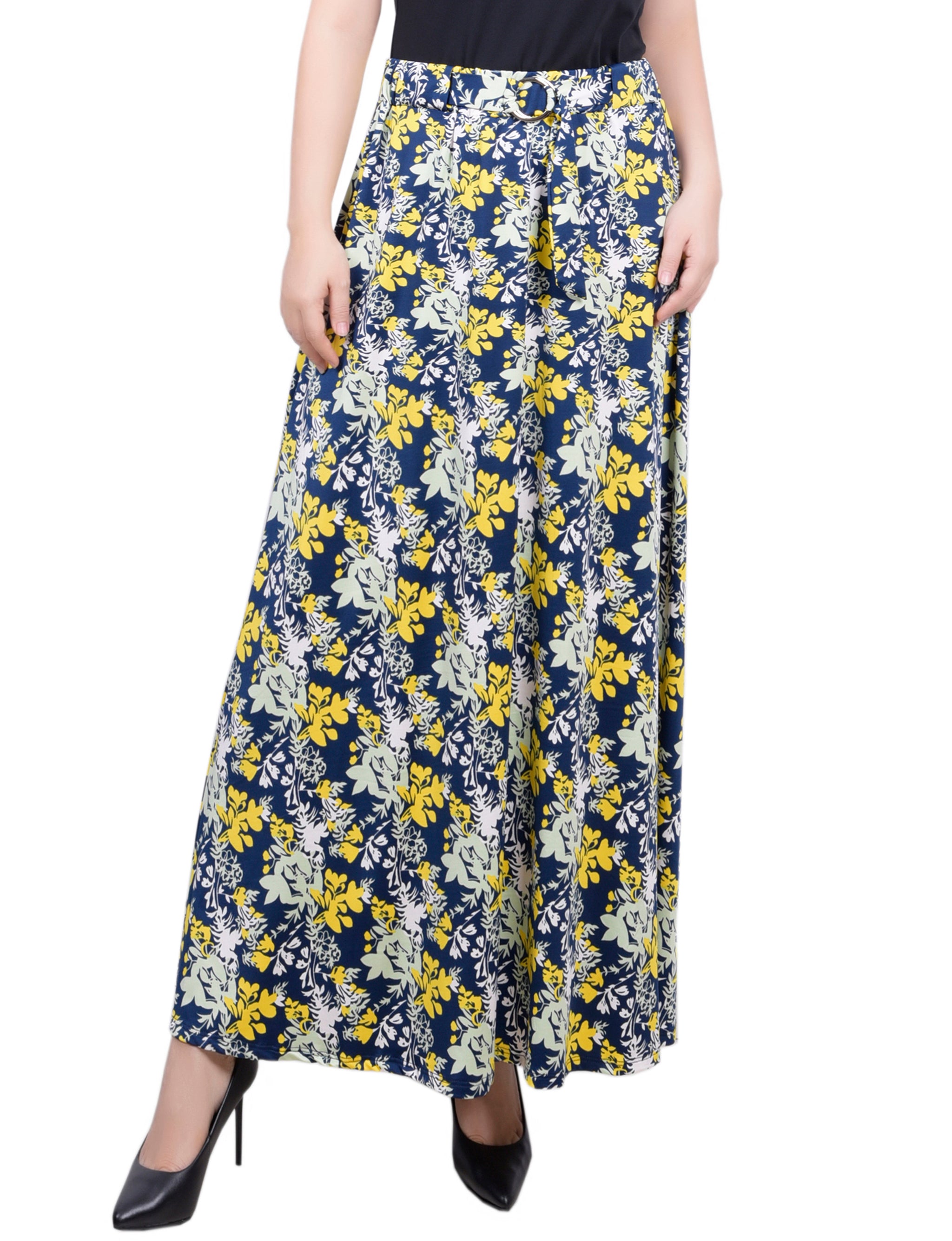 Navy Yellow Plant Ring Detail Midi-Length Skirt - Petite