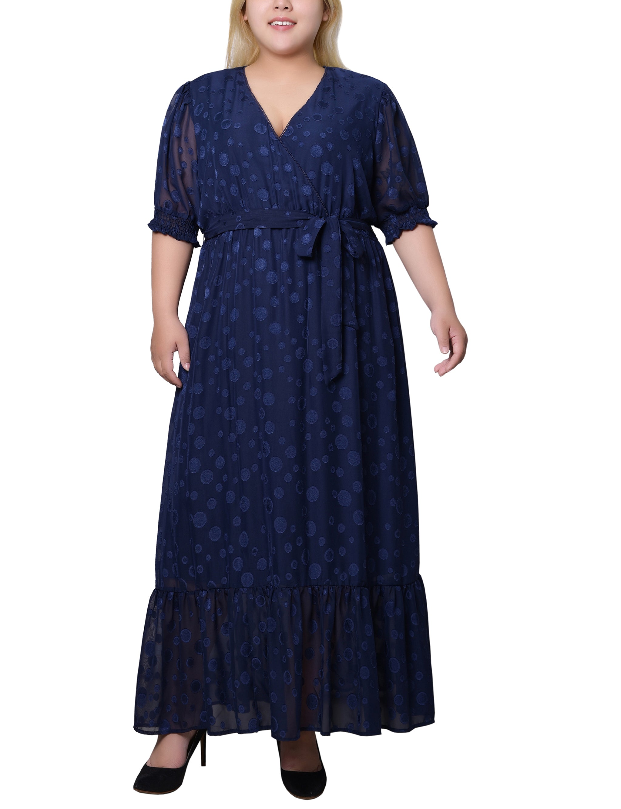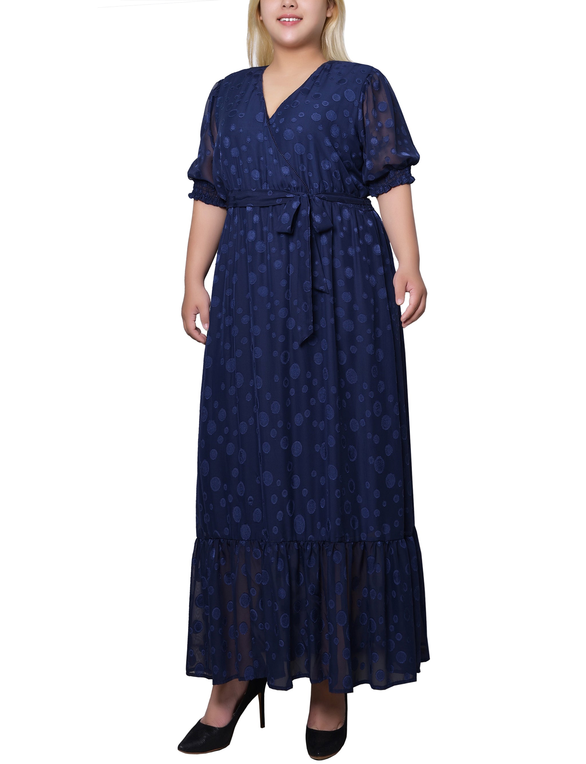 Navy Short Sleeve Surplice Maxi Dress - Plus