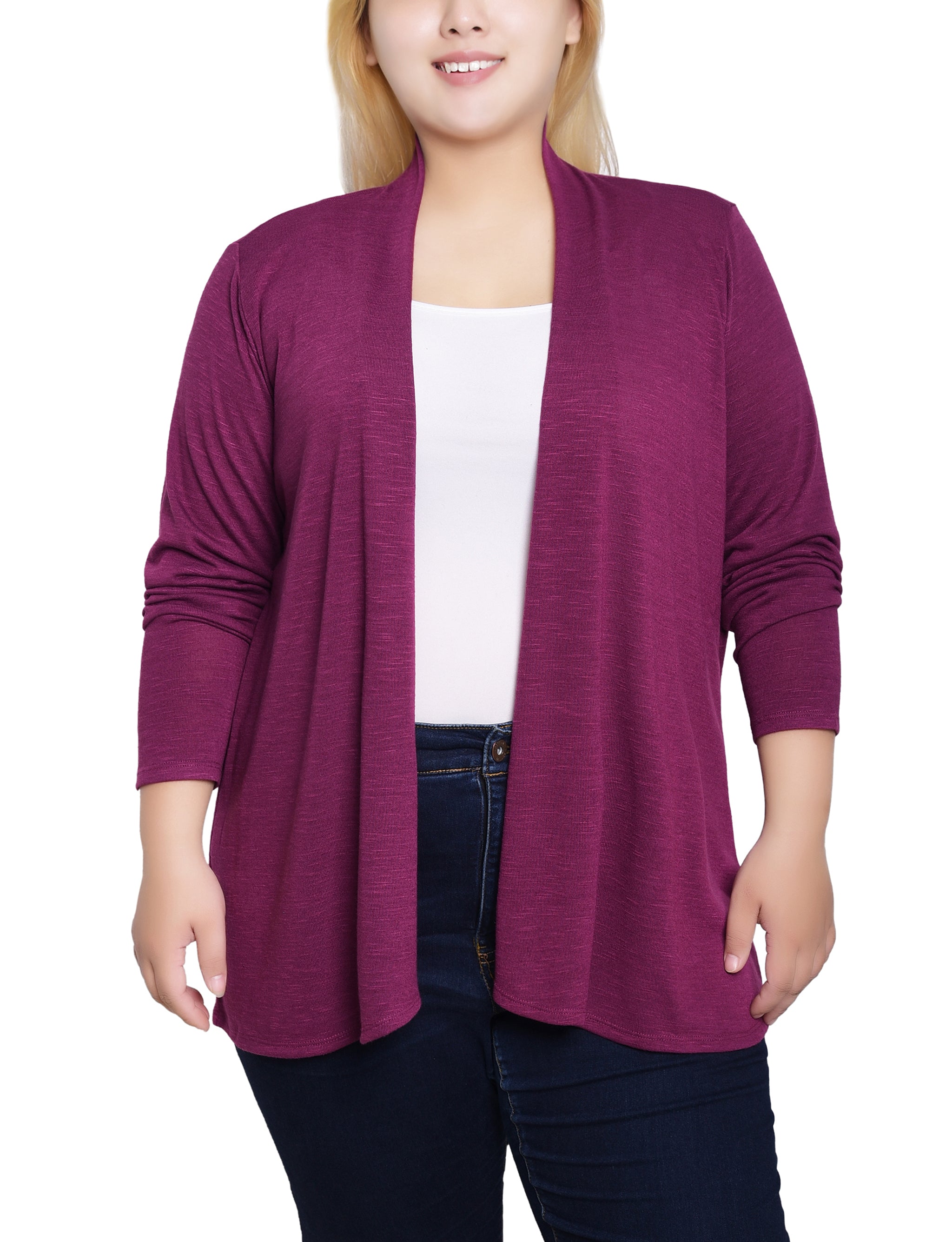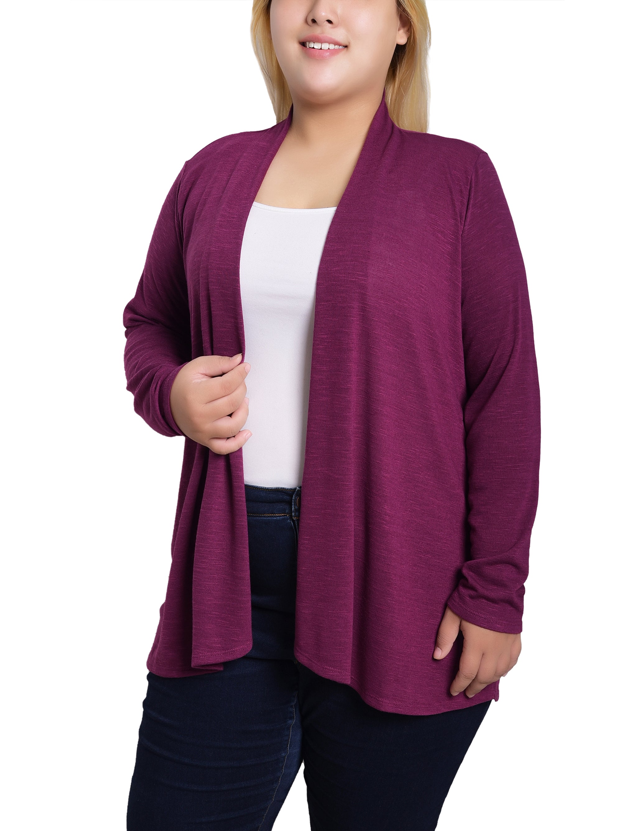 Magenta Purple Long Sleeve Swing Cardigan - Plus
