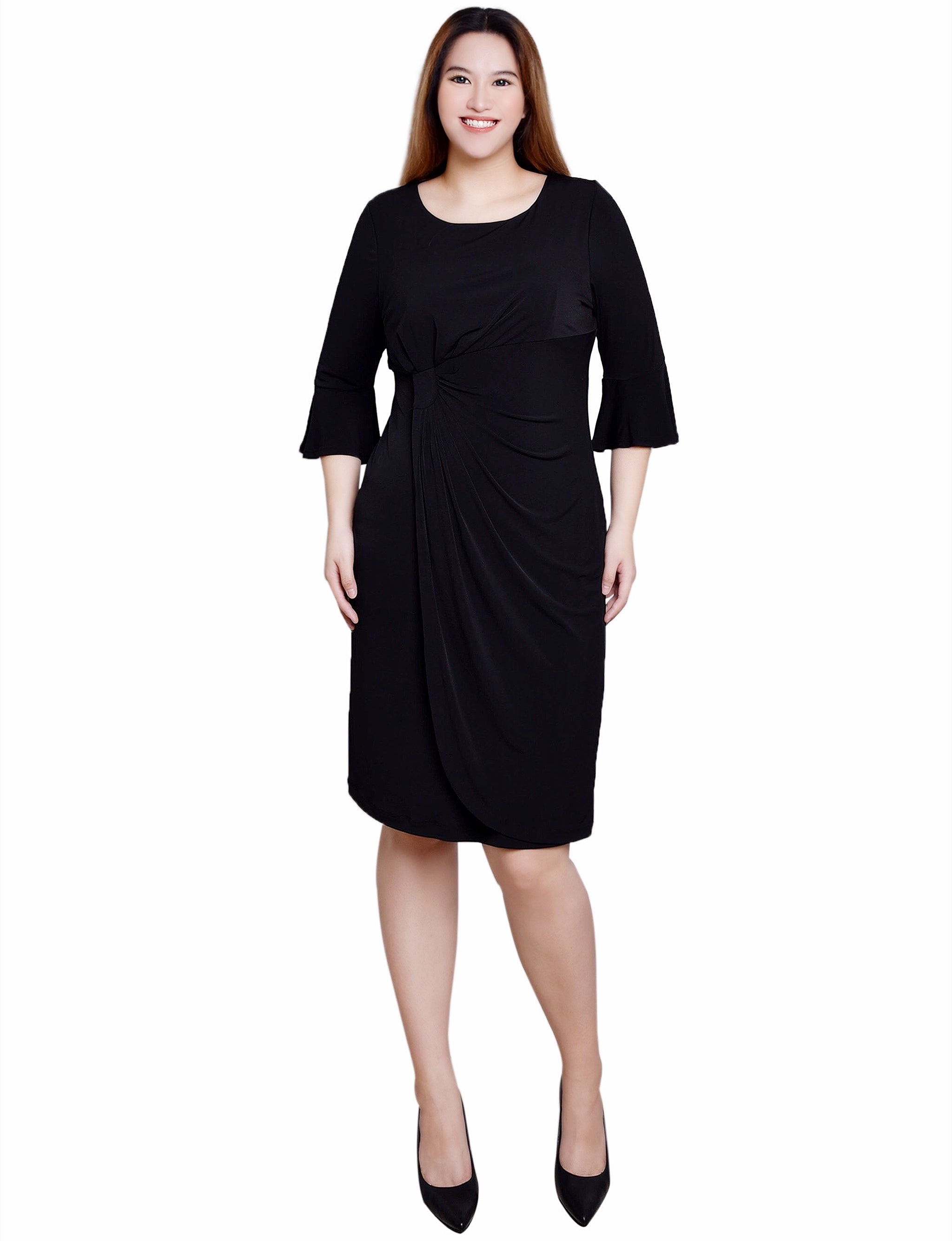 Black 3/4 Length Trumpet Sleeve Dress
