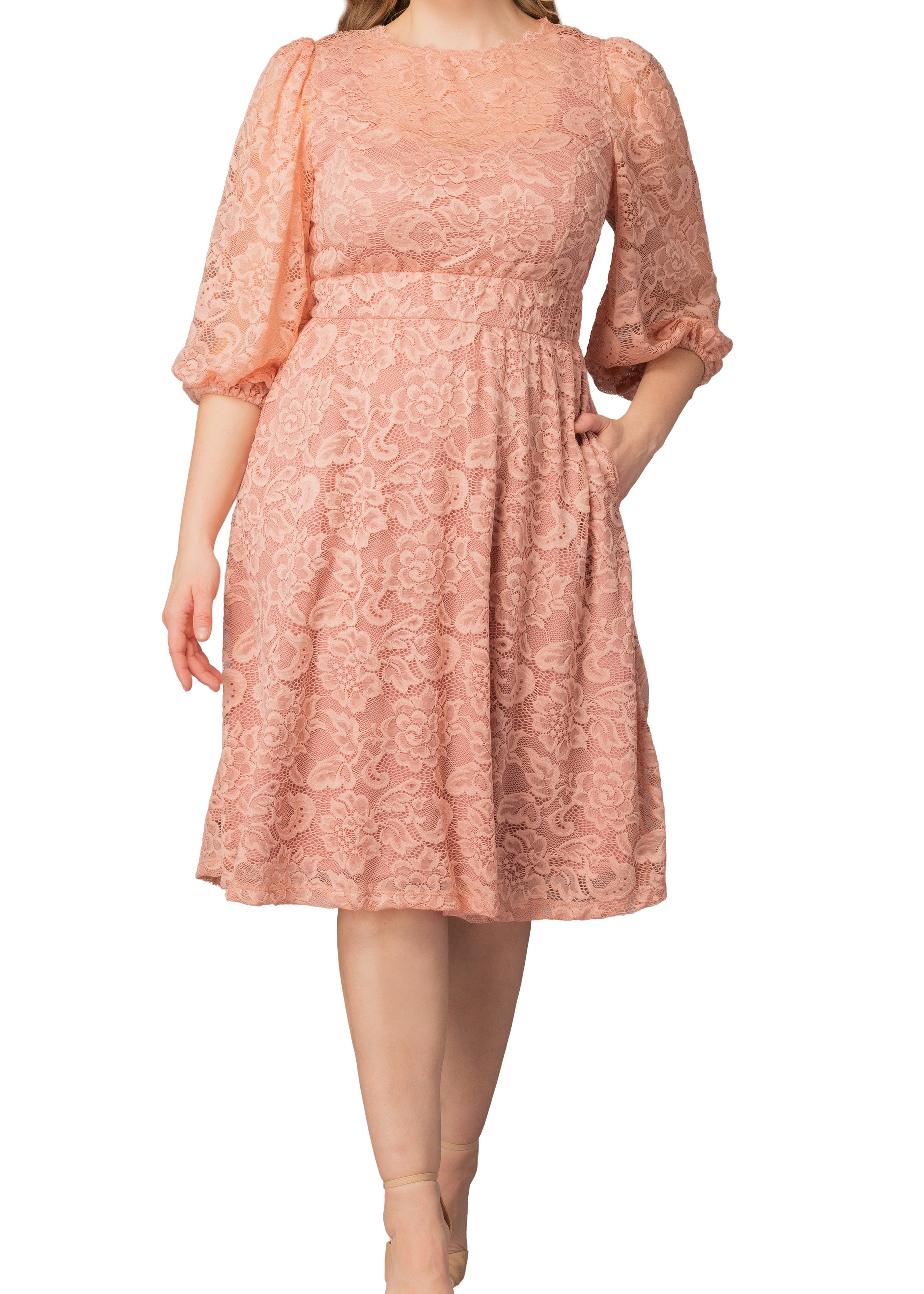 Hepburn Lace Cocktail Dress -Blush Pink - Plus