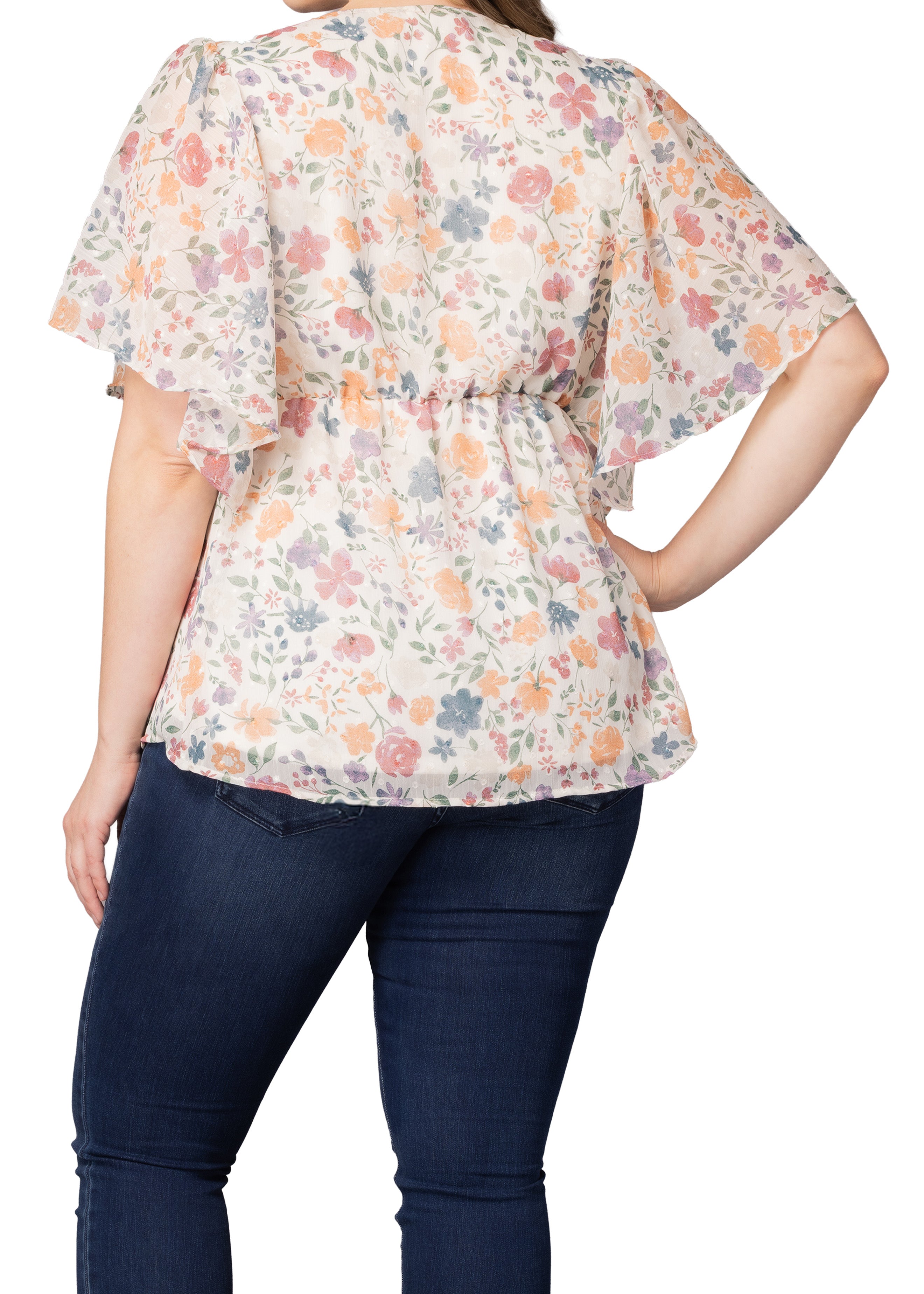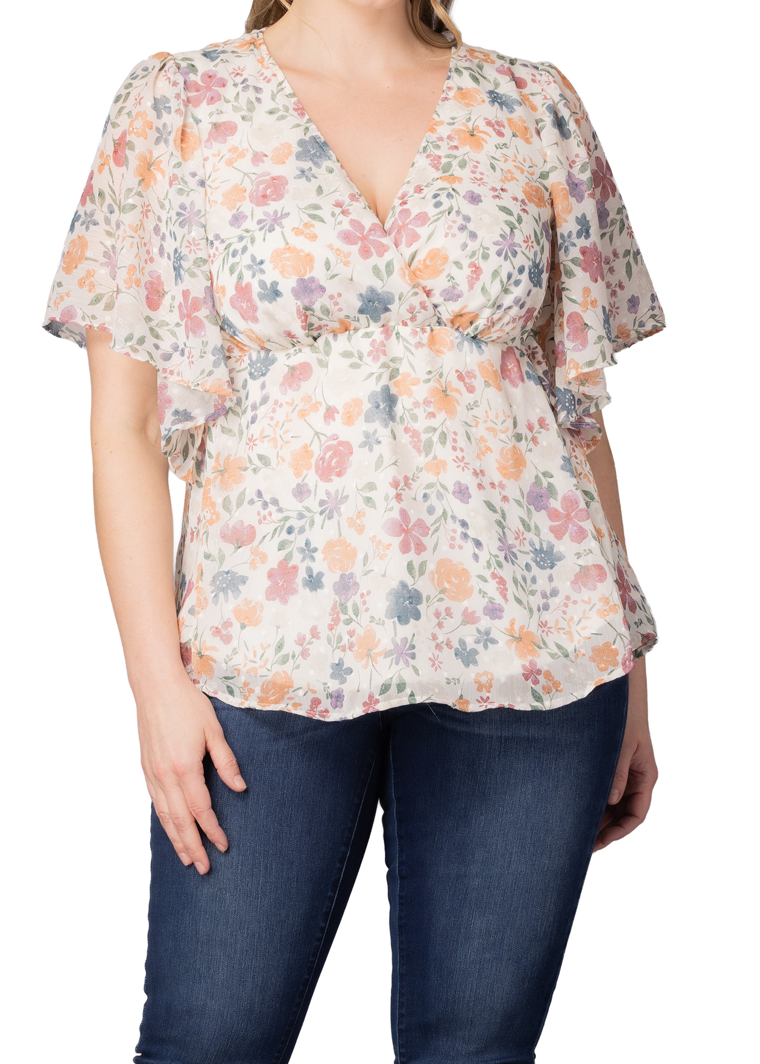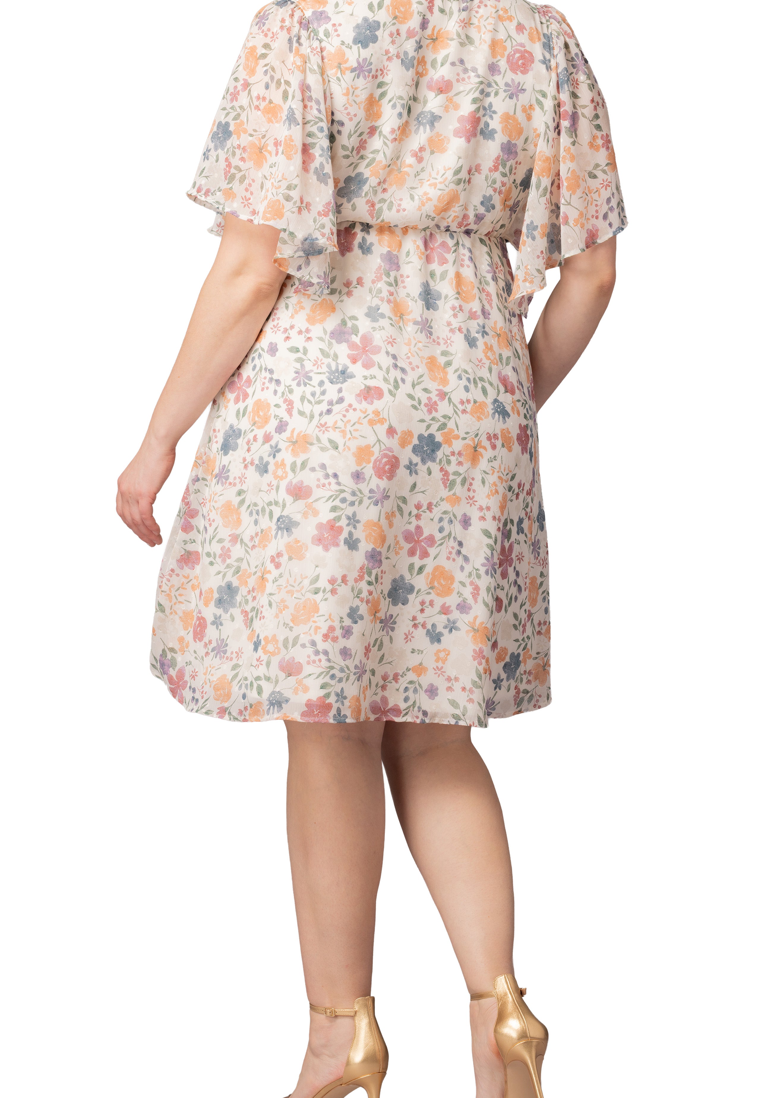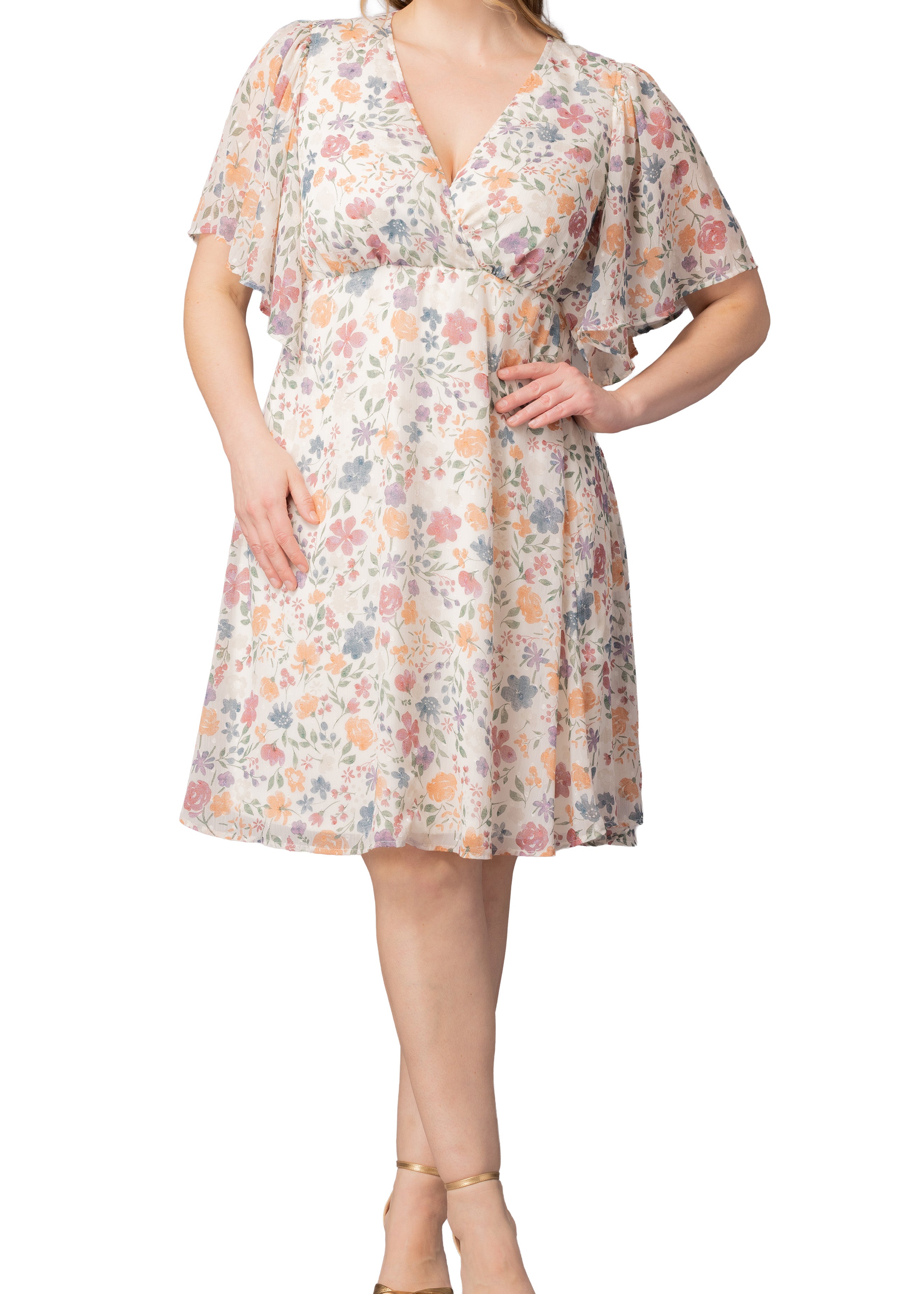 Florence Flutter Sleeve Dress - Pale Blossoms - Plus