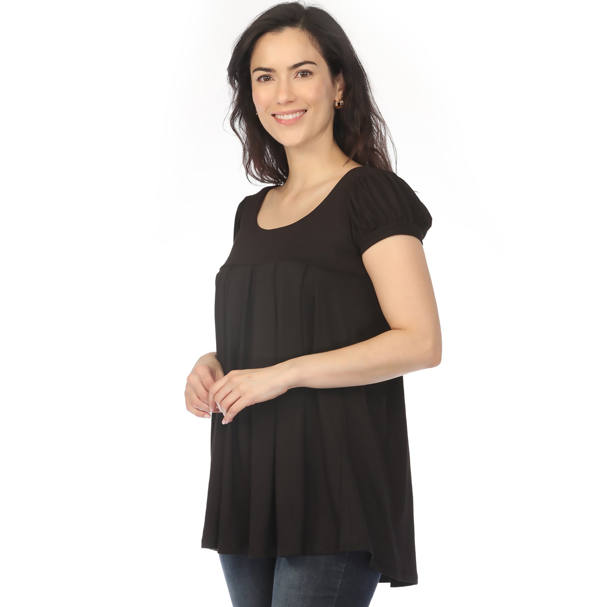 Women's Cap Sleeve Pleated Top - Black