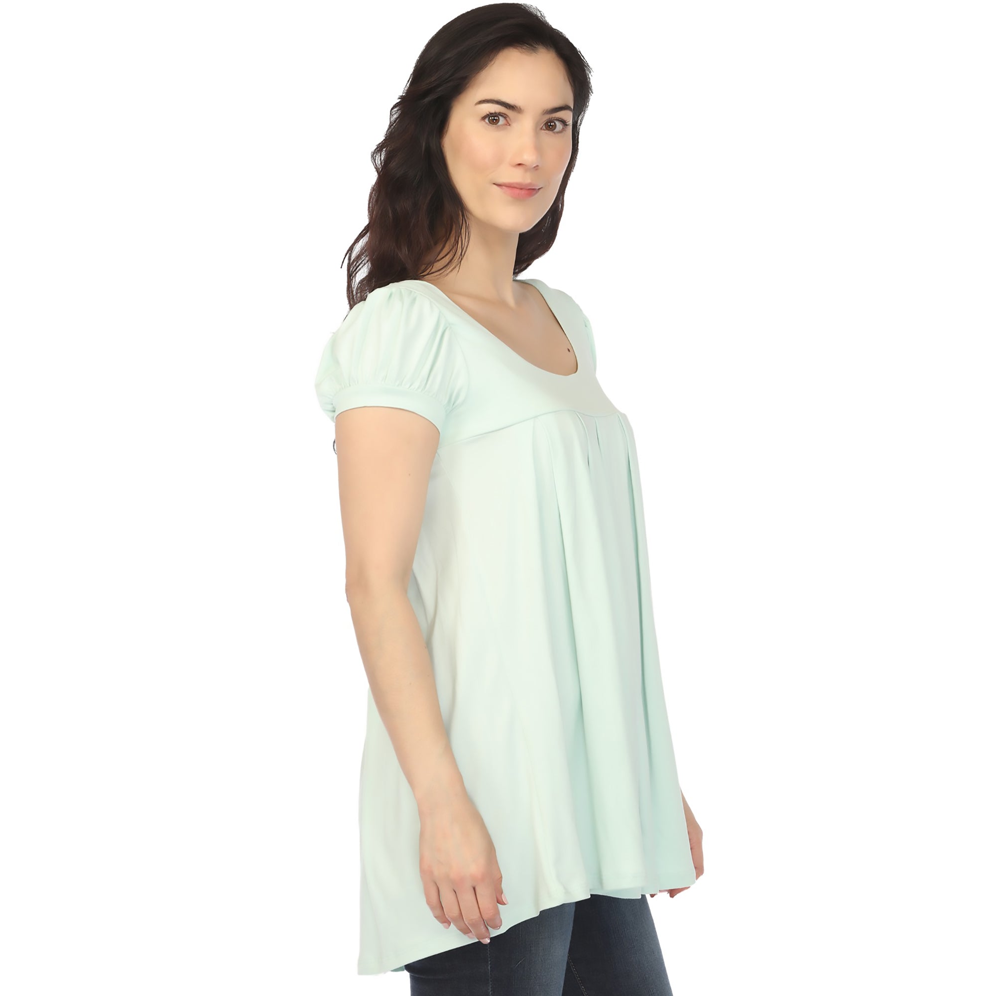 Women's Cap Sleeve Pleated Top - Aqua