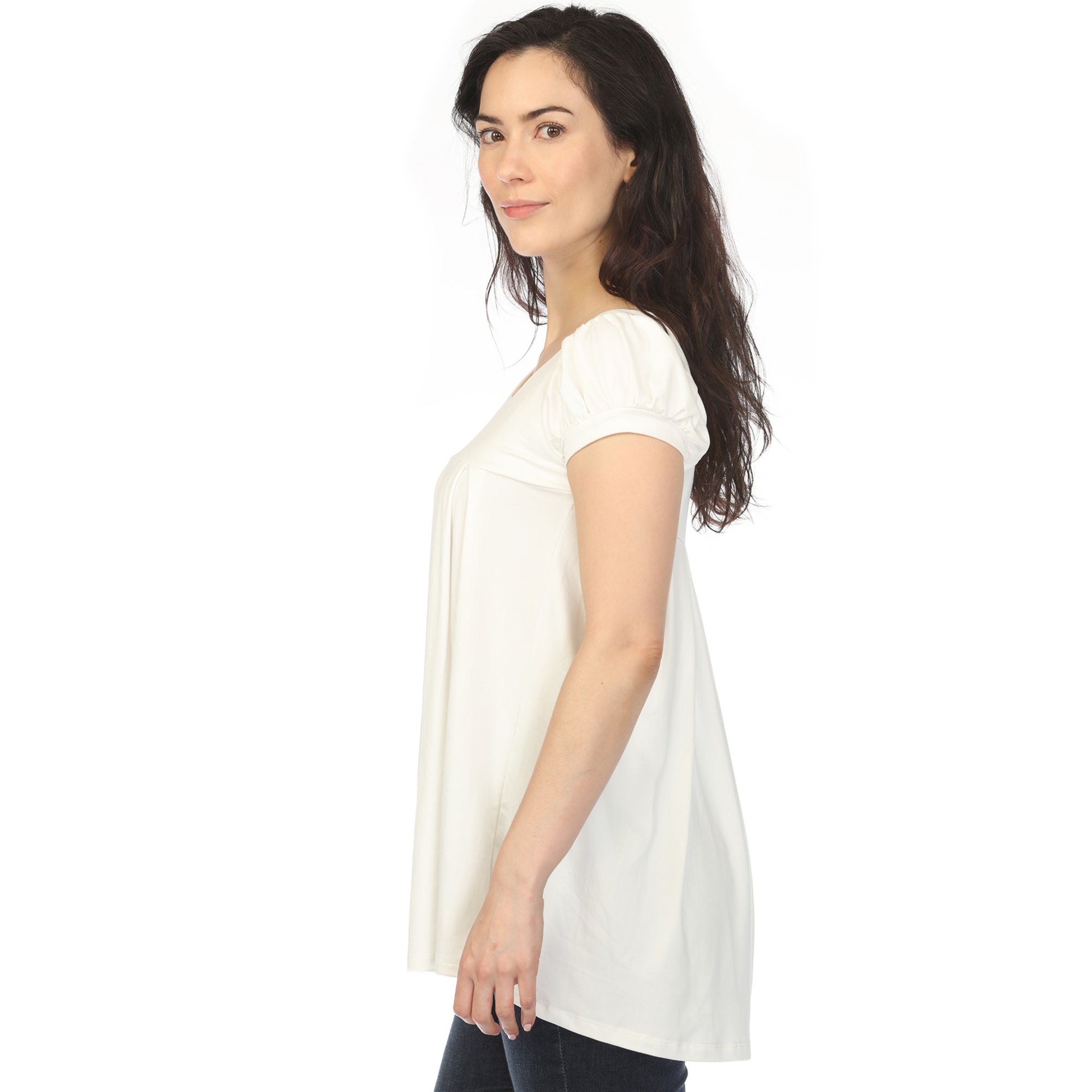 Women's Cap Sleeve Pleated Top - Off White - Plus