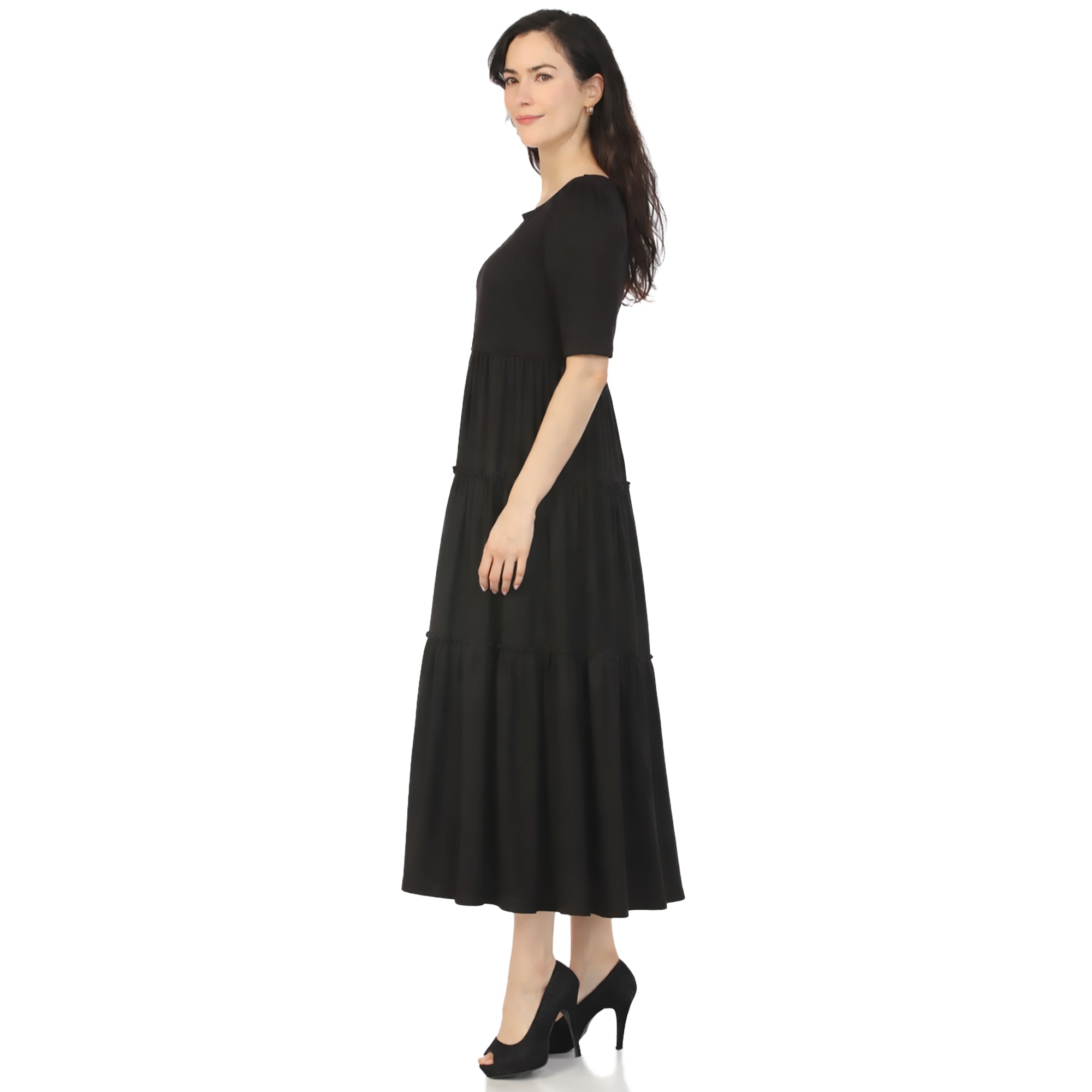 Women's Square Neck Short Sleeve Tiered Dress - Black