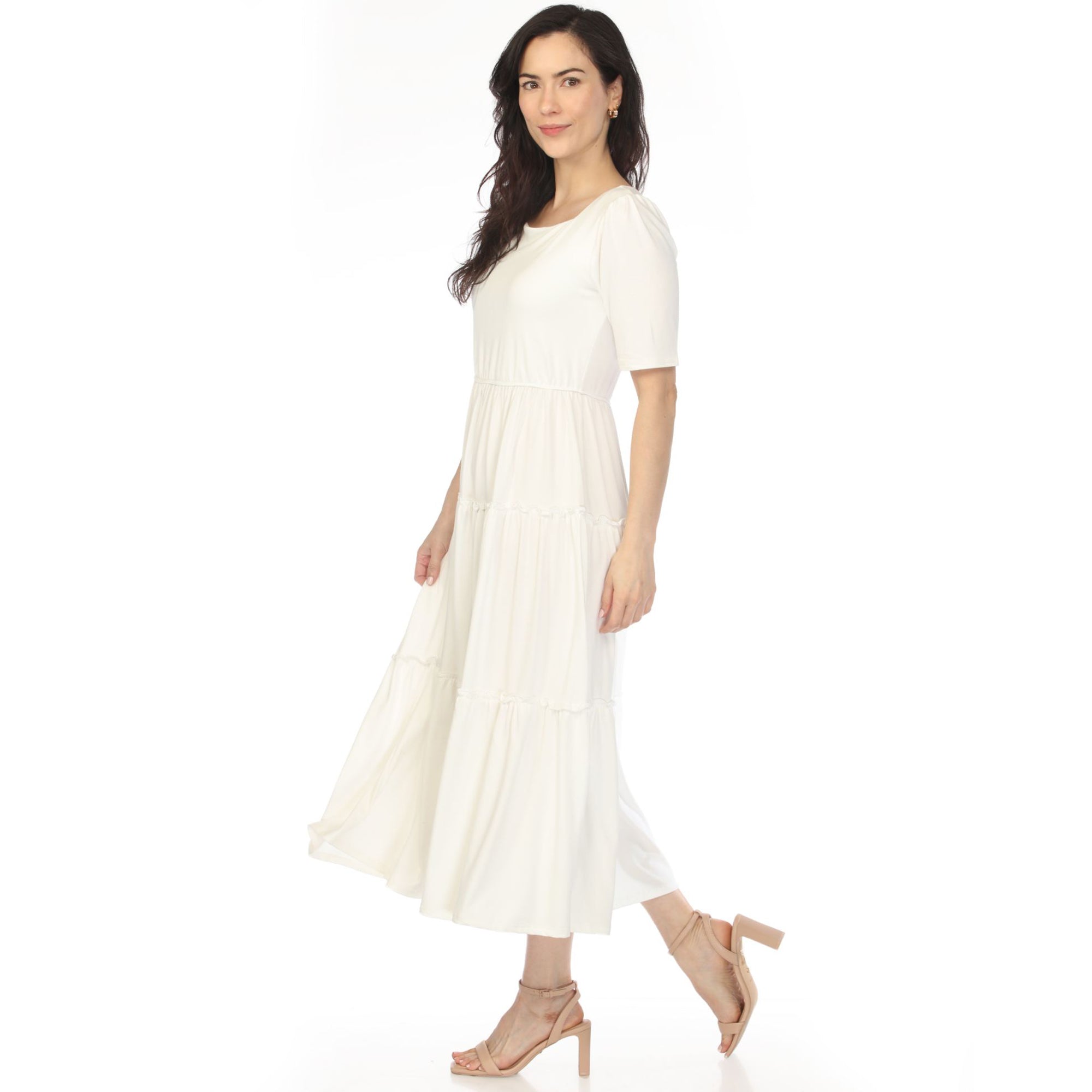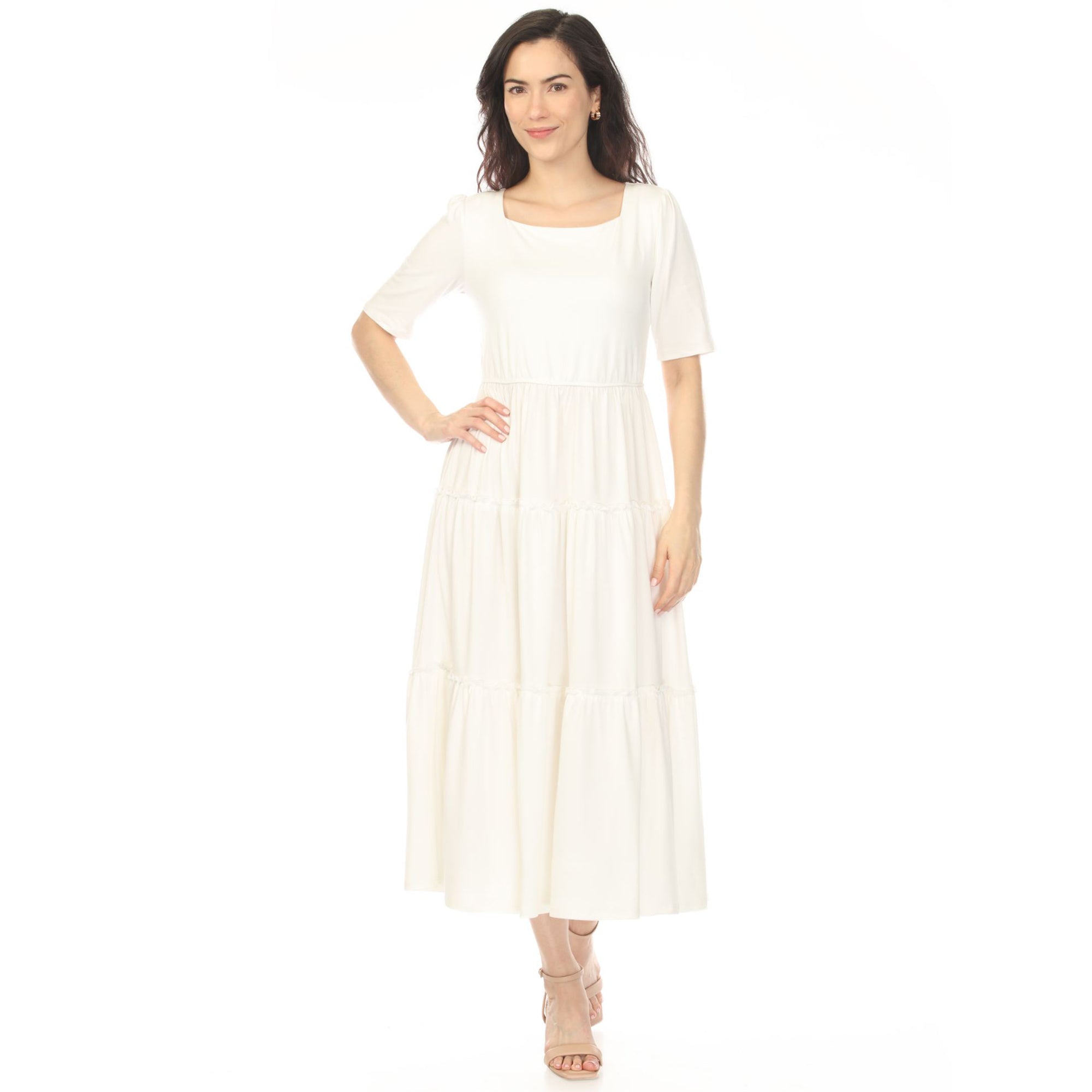Women's Square Neck Short Sleeve Tiered Dress - Off White
