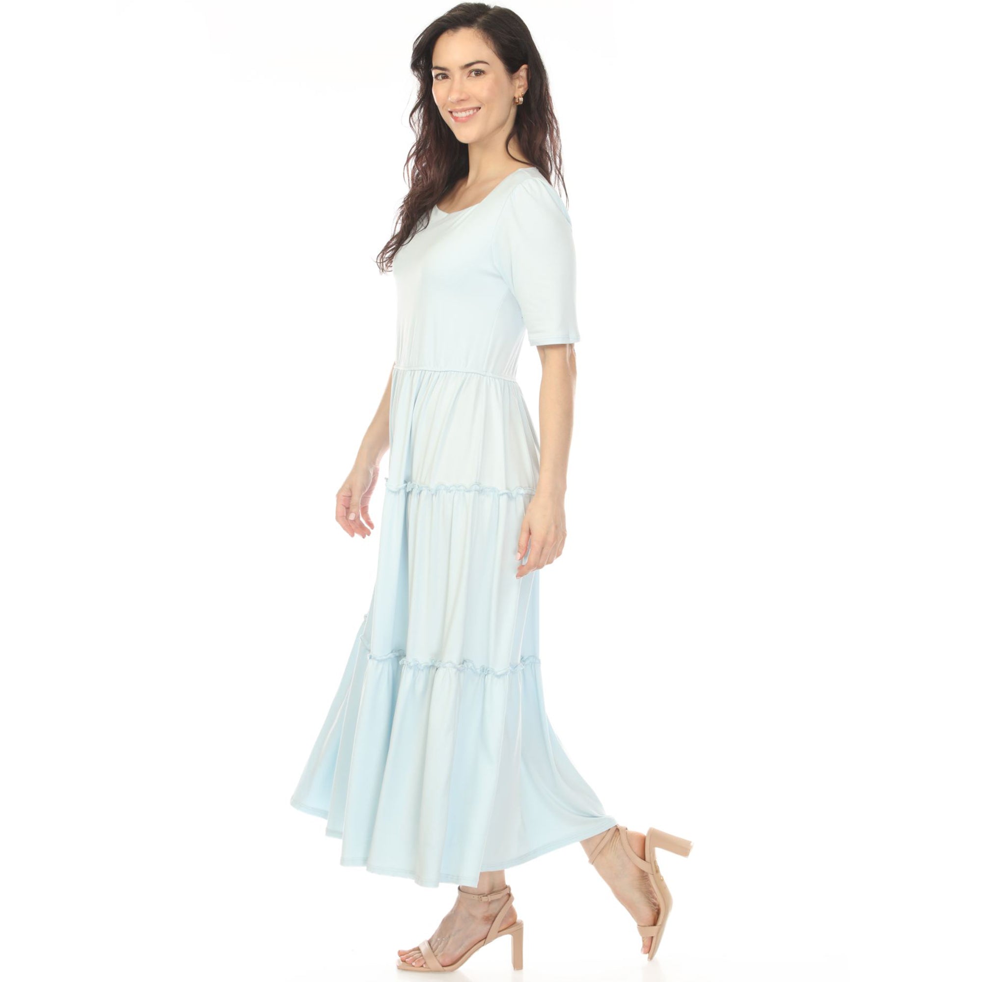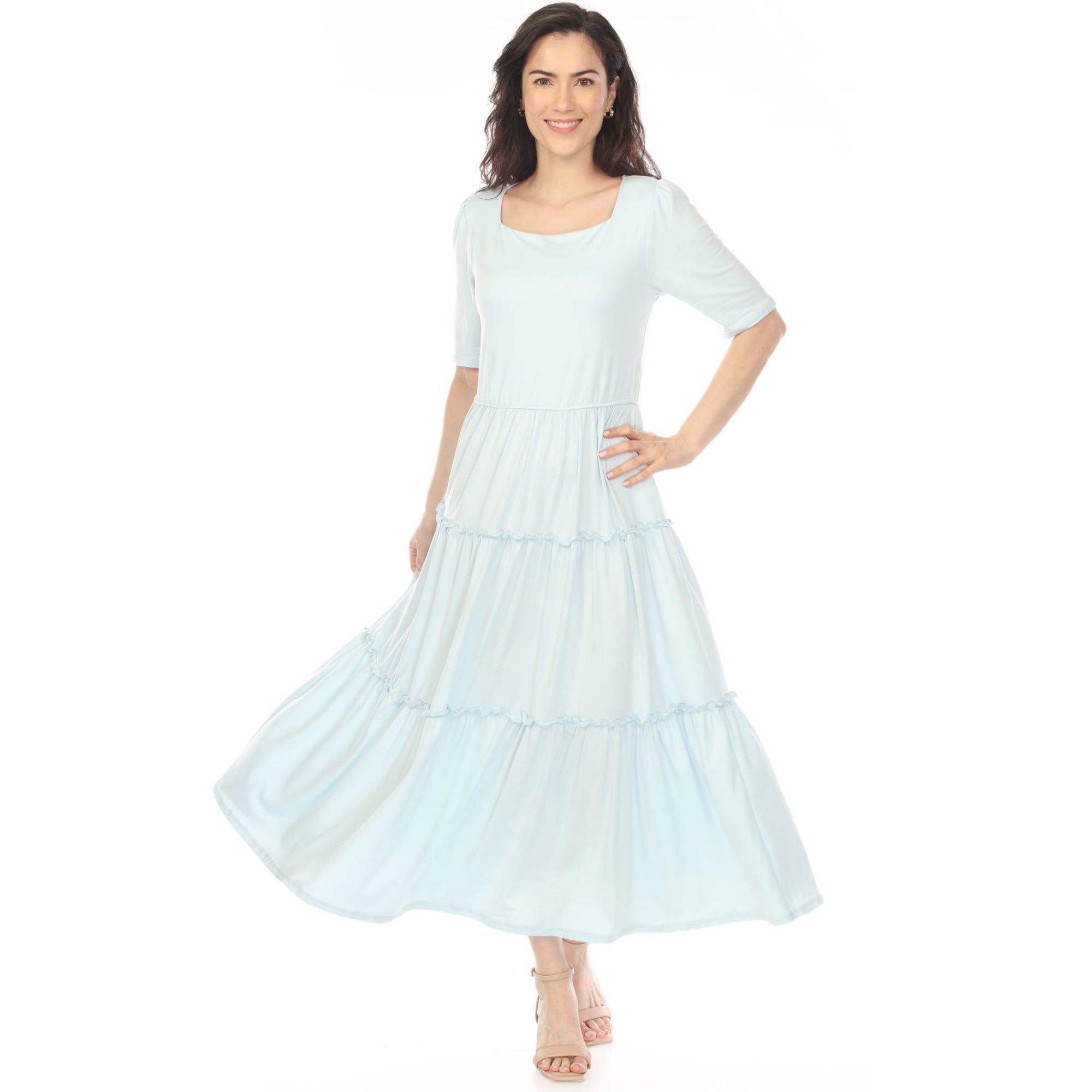 Women's Square Neck Short Sleeve Tiered Dress - Dusty Blue