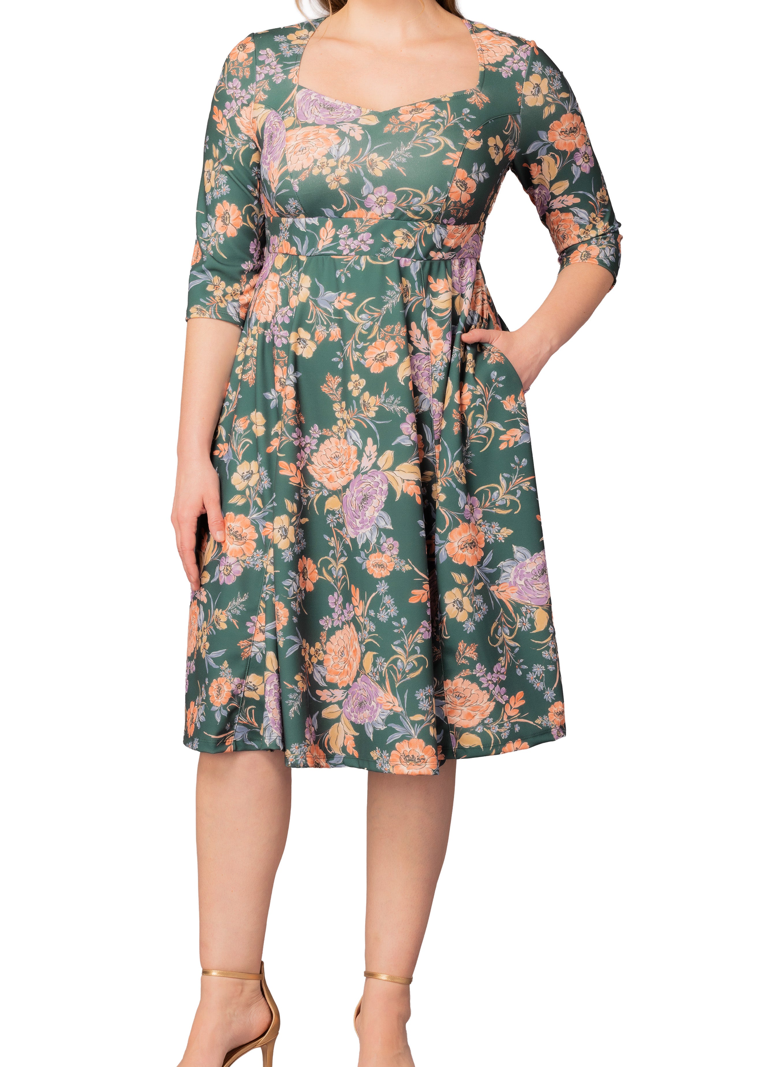 Gia Midi Dress -Sage Garden Print - Plus