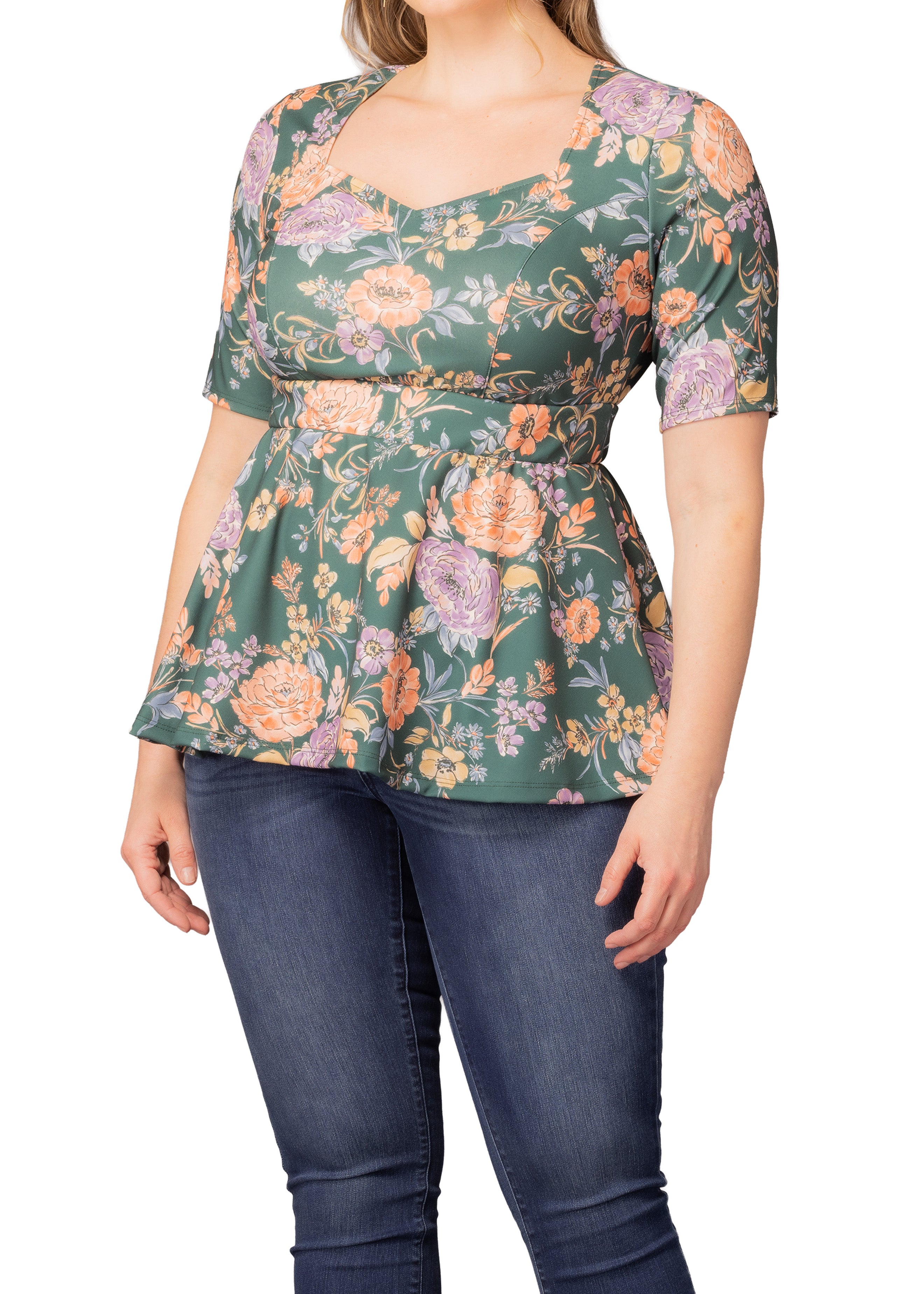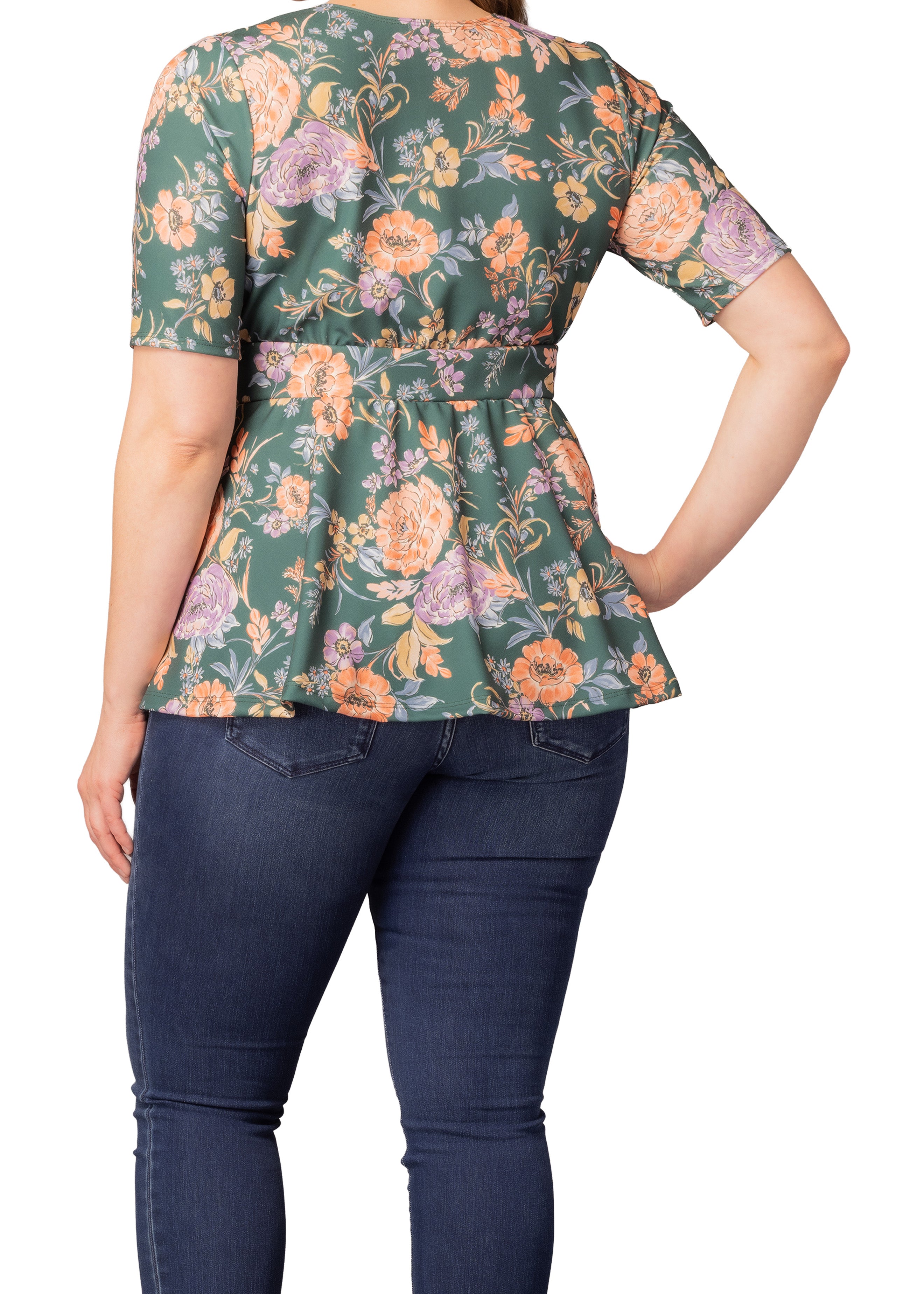 Posh Peplum Top - Green Garden - Plus