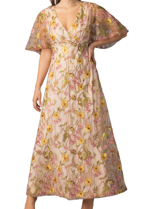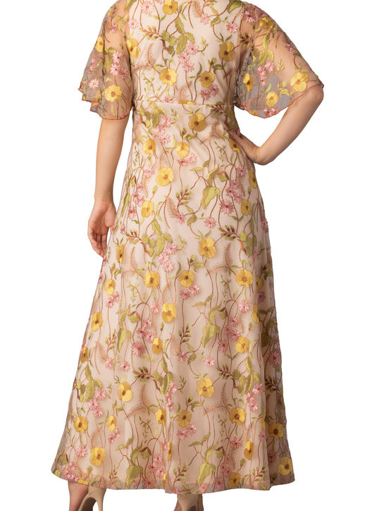 Embroidered Elegance Evening Gown -Sunkissed Garden