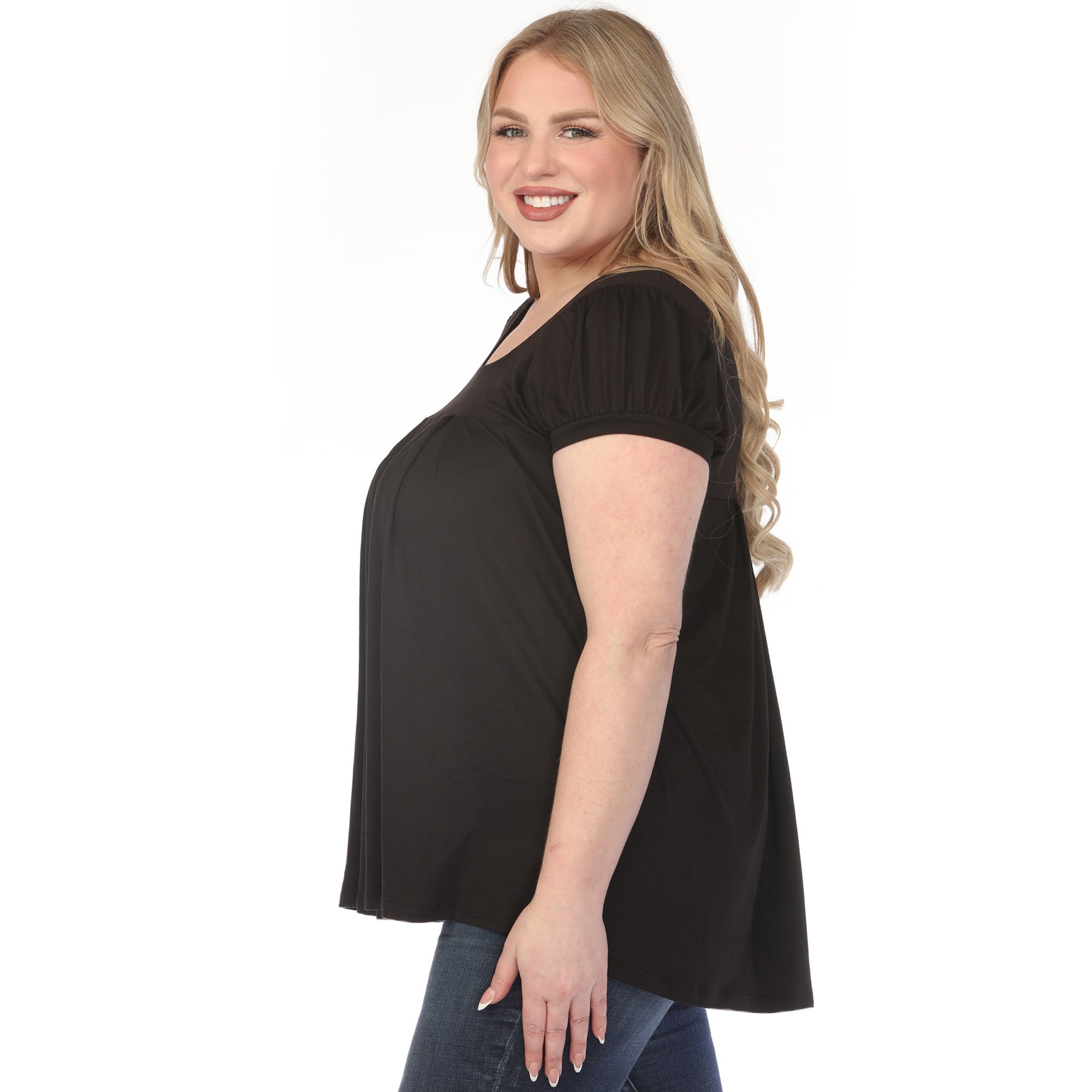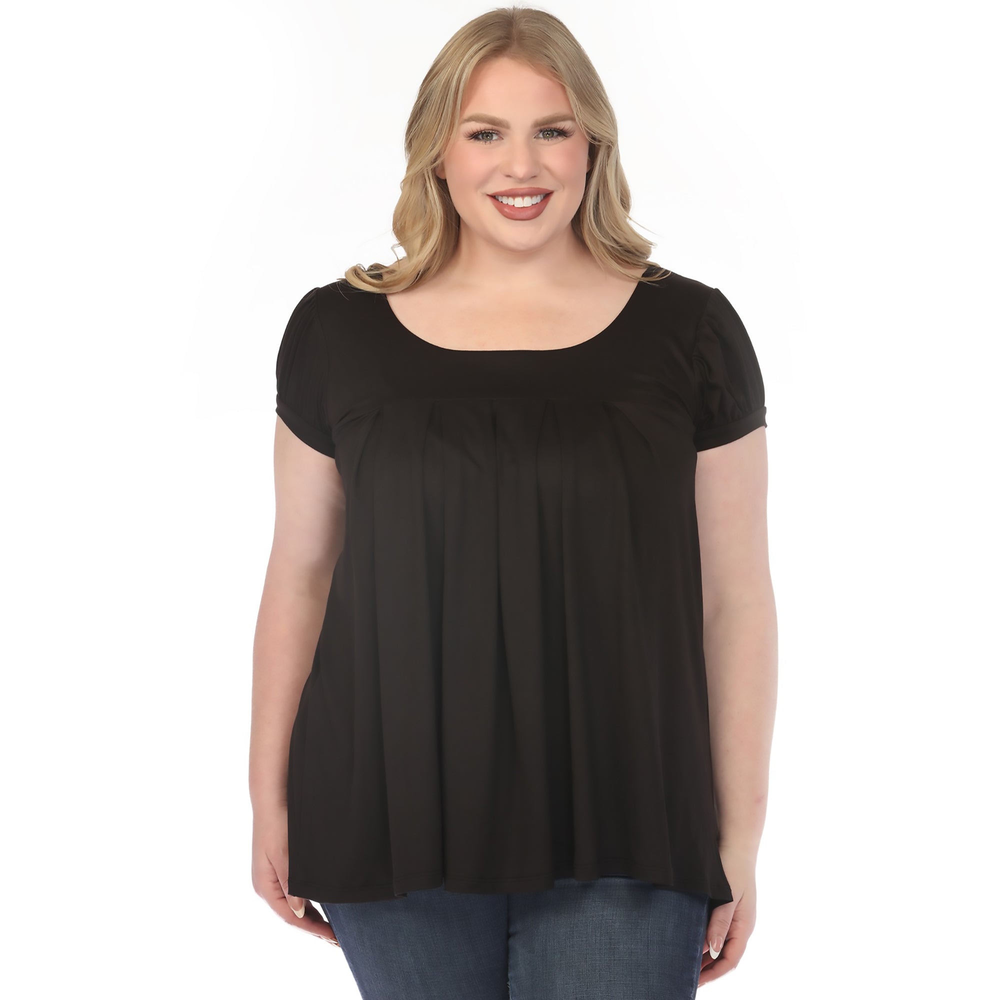 Women's Cap Sleeve Pleated Top - Black - Plus