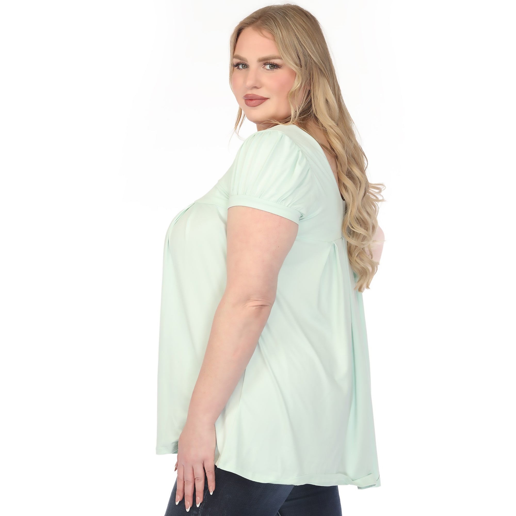 Women's Cap Sleeve Pleated Top - Aqua - Plus