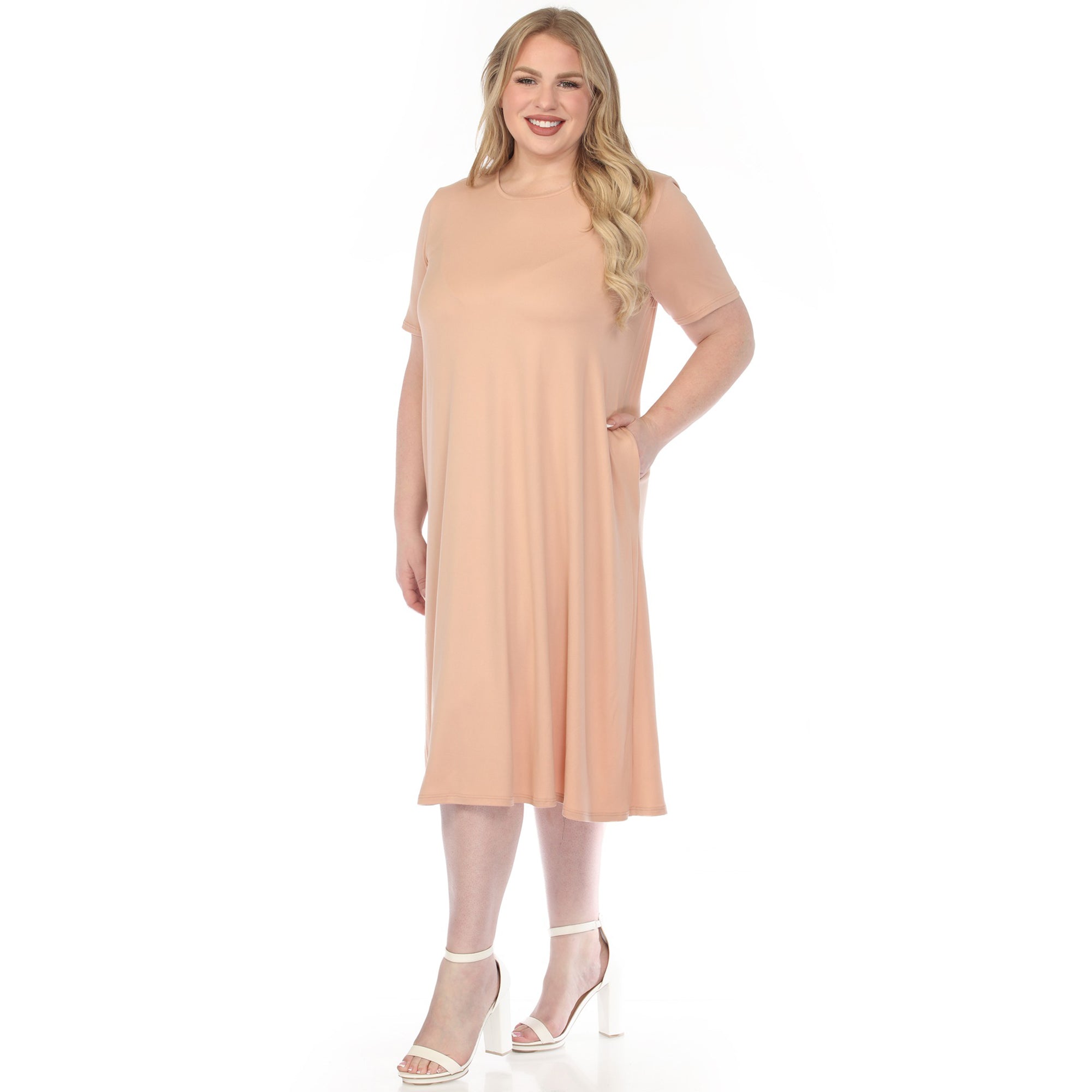 Women's Crew Neck T-Shirt Dress - Rose Gold - Plus