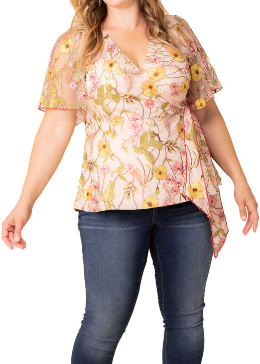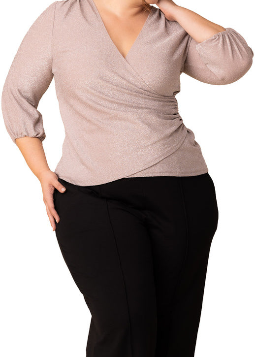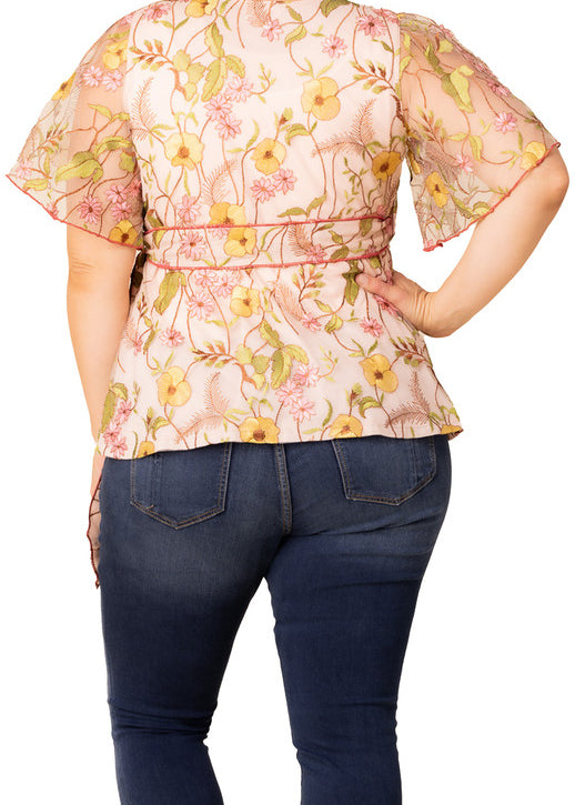 3/4 Ruffle Sleeve V-Neck Blouse - Blush - Plus