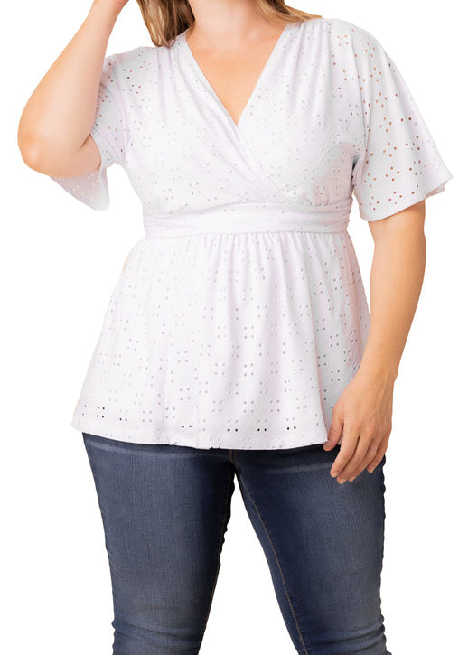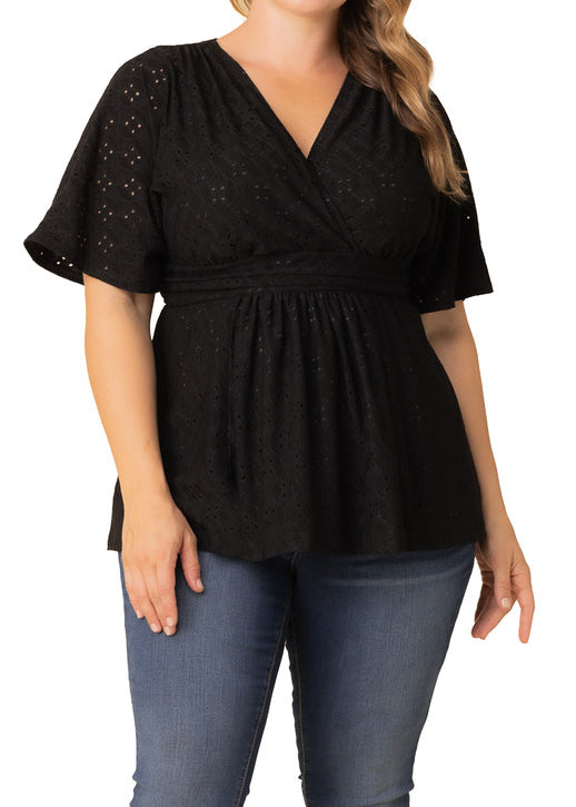 NY Collection Short Sleeve Eyelet-Inset Blouse