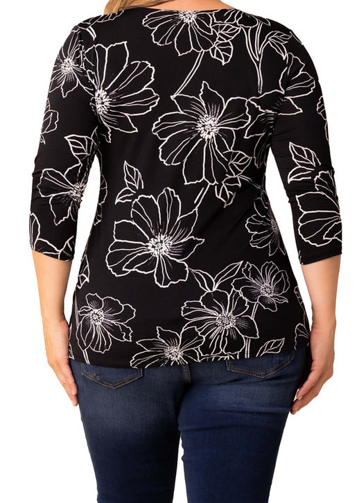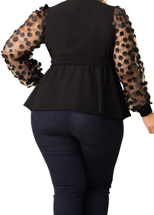 3/4 Flare Sleeve Cutout Neck Bubble Blouse in Black - Plus