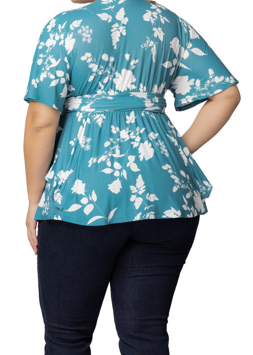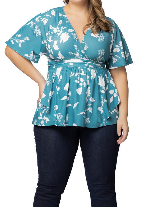 3/4 Flare Sleeve Cutout Neck Bubble Blouse in Blue - Plus