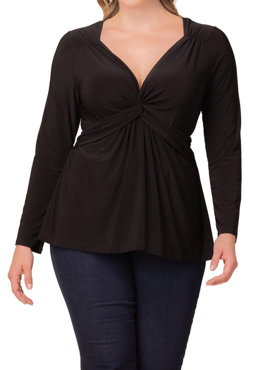Abigail Long Sleeve Twist Top - Black Noir - Plus