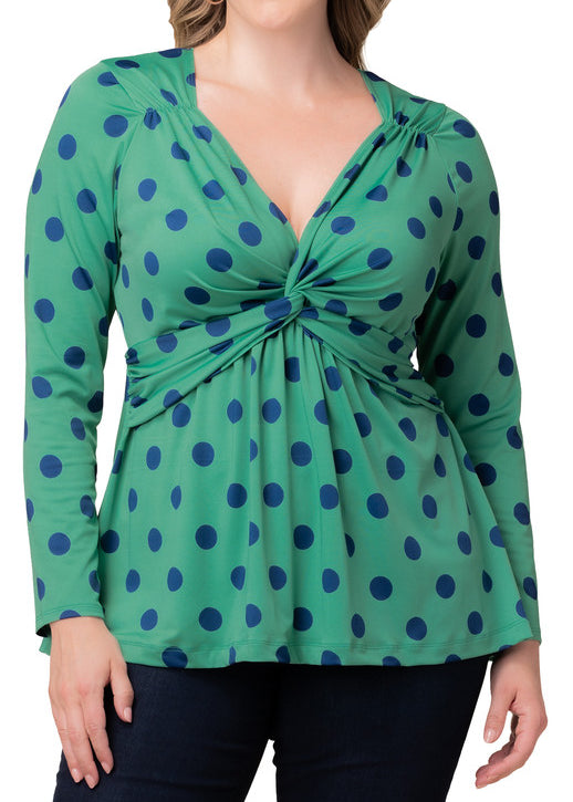 Abigail Long Sleeve Twist Top - Green Polka Dot - Plus