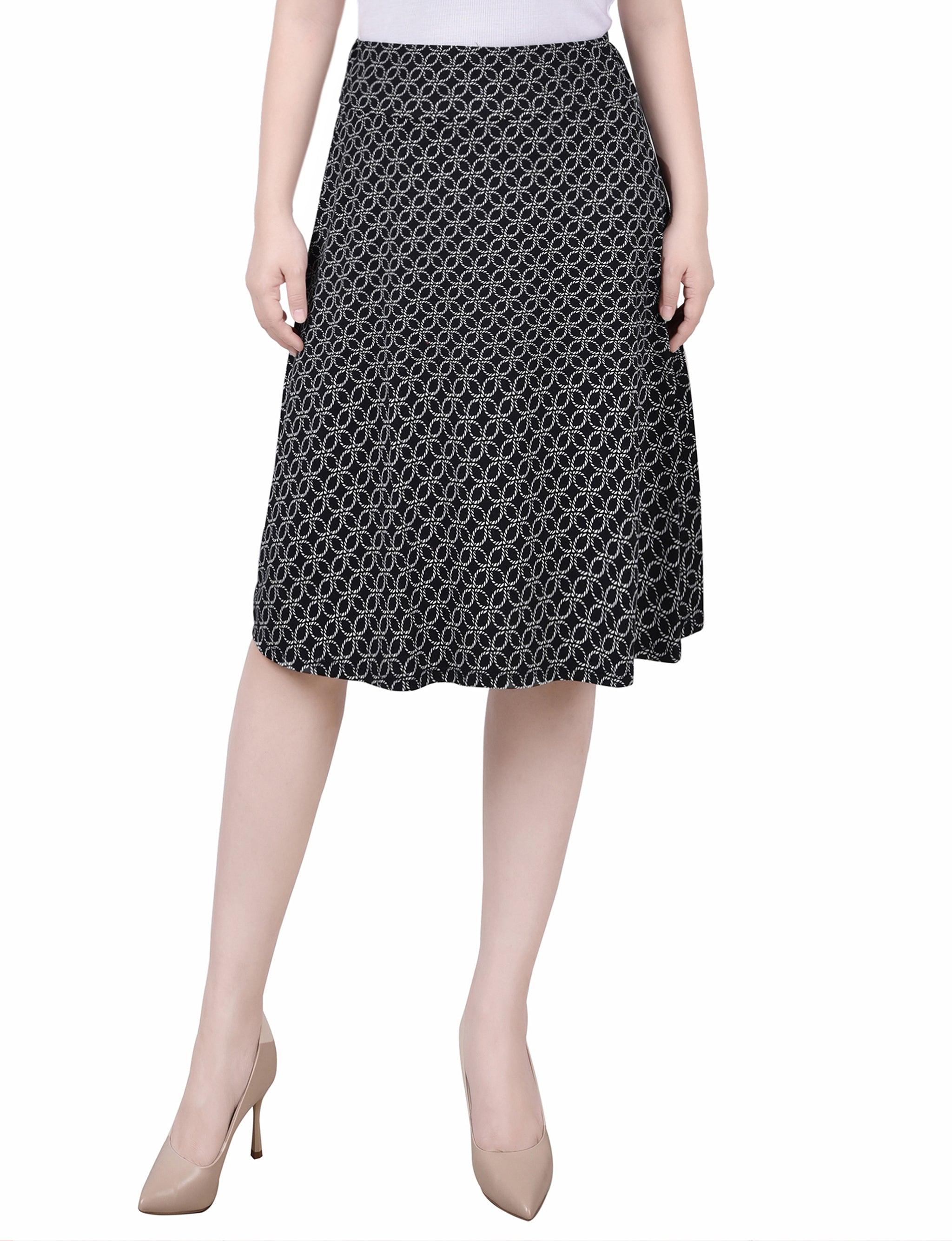 Black Doralflower Wide Waisted Knee Length Skirt - Petite