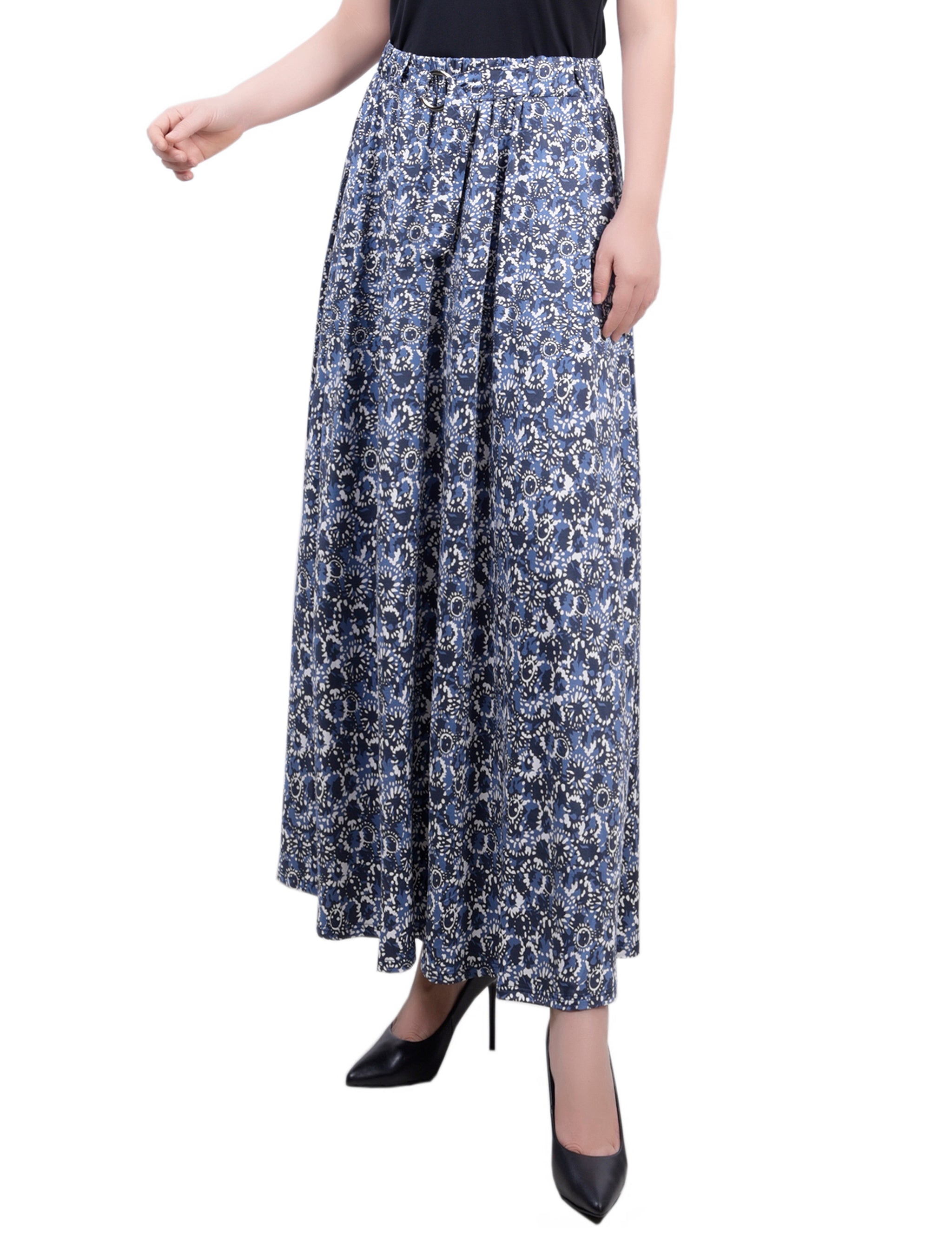 Blue Long Square Abstract Maxi Skirt With Sash Waist Tie - Petite