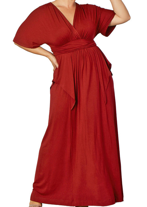 Short Sleeve V-neck Maxi Dress - Plus
