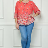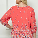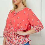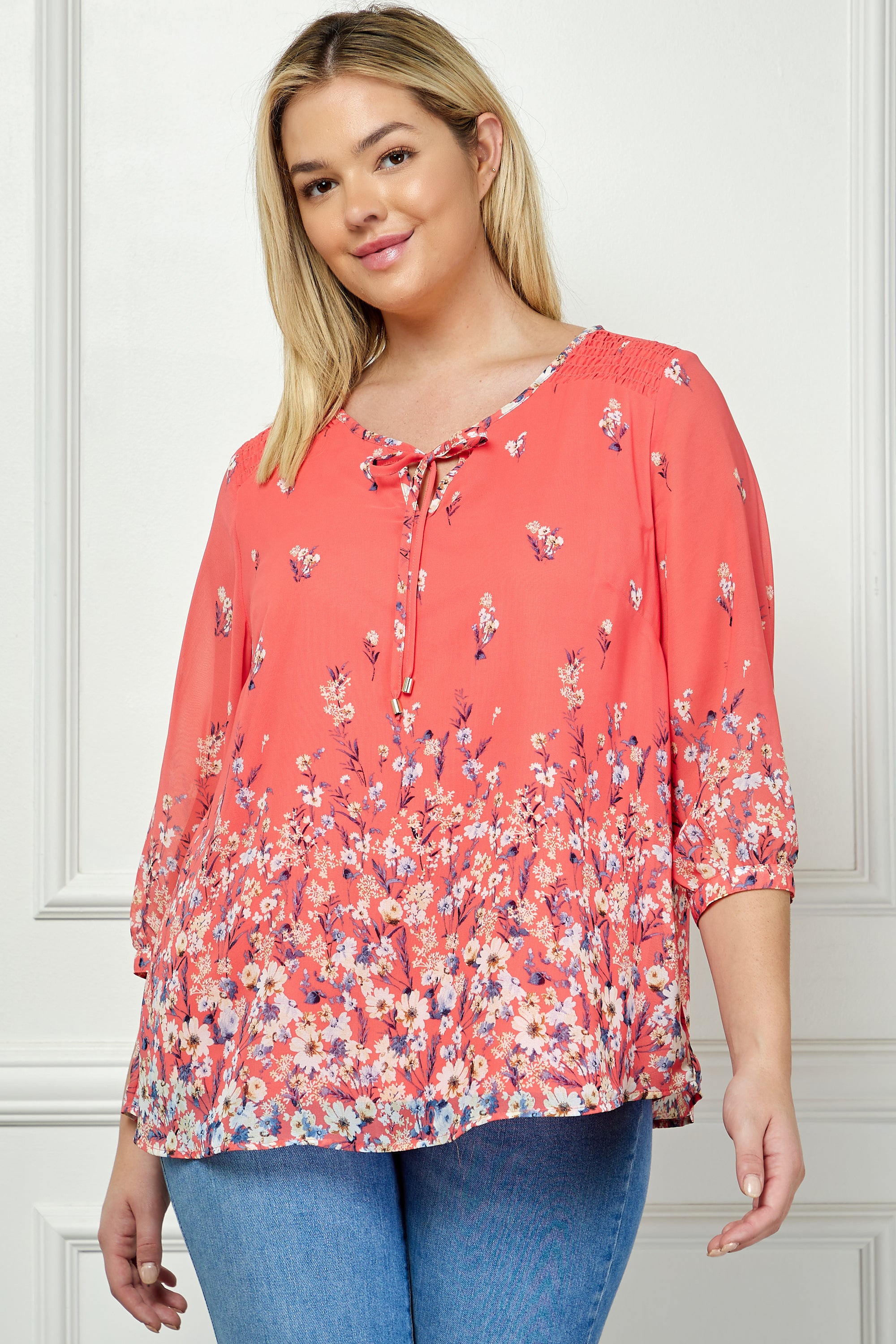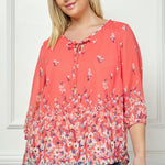 3/4 Button Cuff Sleeve Beaded Tie Front Neck Border Print Blouse in Border Print Chiffon with Spring Bloom Print and colors, a perfect blouse to wear for Spring & Summer.