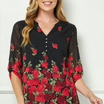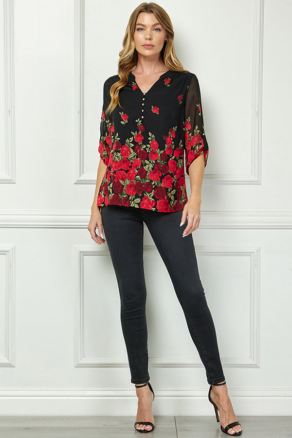 The 3/4 sleeves with button tabs allow for easy styling—wear them rolled up for a relaxed feel or down for a more polished finish. Designed with a flattering popover silhouette and full lining for a smooth drape, it pairs beautifully with trousers, skirts, or jeans for any occasion.