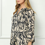 Effortlessly polished and easy to wear, this blouse blends refined design with everyday comfort. The relaxed popover silhouette offers a flattering fit, while the mandarin collar adds a modern, structured touch that elevates any outfit.
