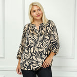 The 3/4 sleeves with elastic cuffs provide a comfortable, flexible finish, perfect for year-round wear. Ideal for pairing with trousers, skirts, or jeans, this versatile piece transitions seamlessly from the workday to the weekend.