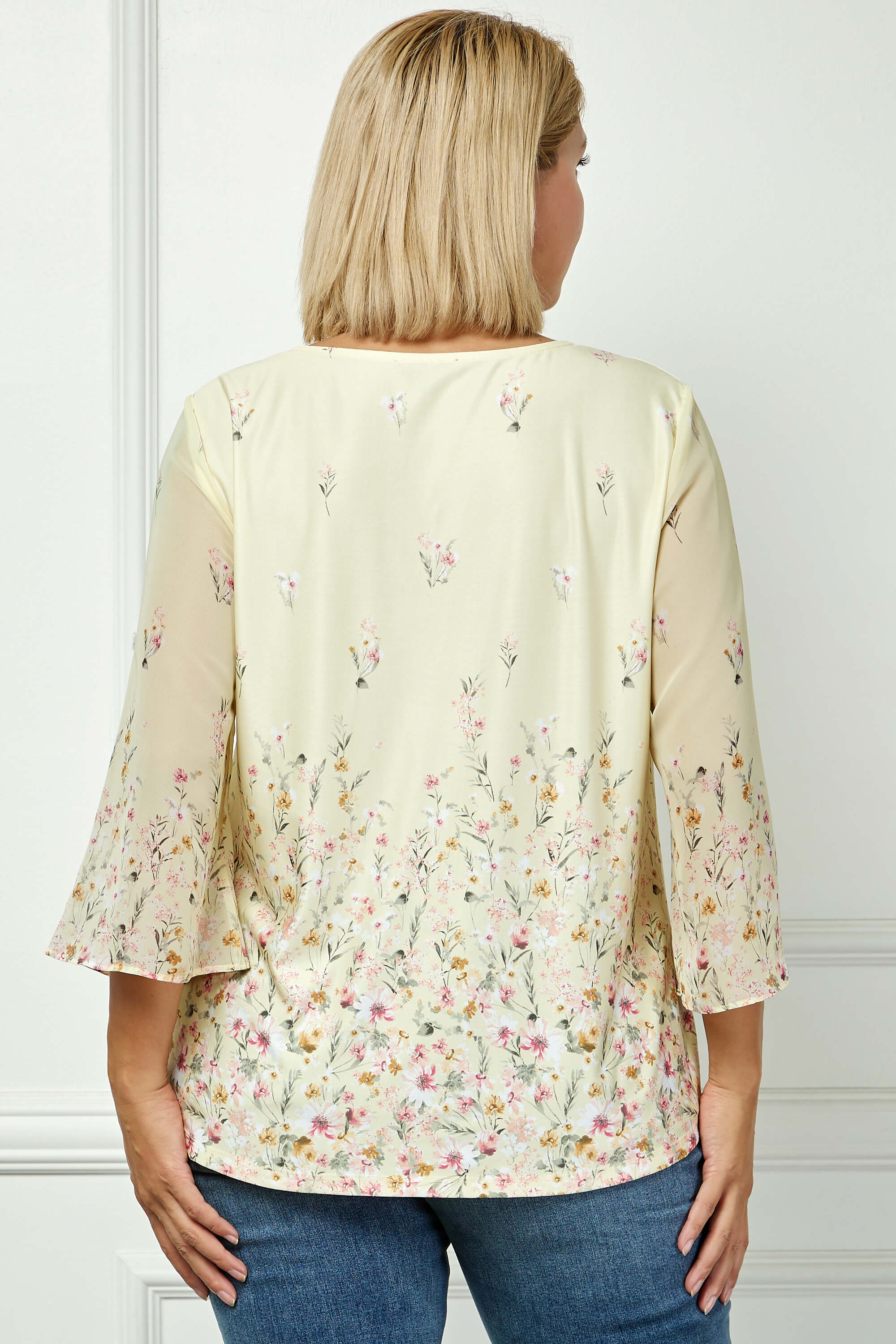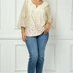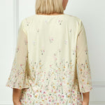 Graceful and eye-catching, this blouse blends elegant detailing with an easy, flattering silhouette. The cutout neckline adds a modern touch, while the border print design brings visual interest and a refined finish.