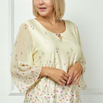 3/4 Flare Sleeve Cutout Neck Border Print Blouse - Yellow - Plus