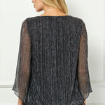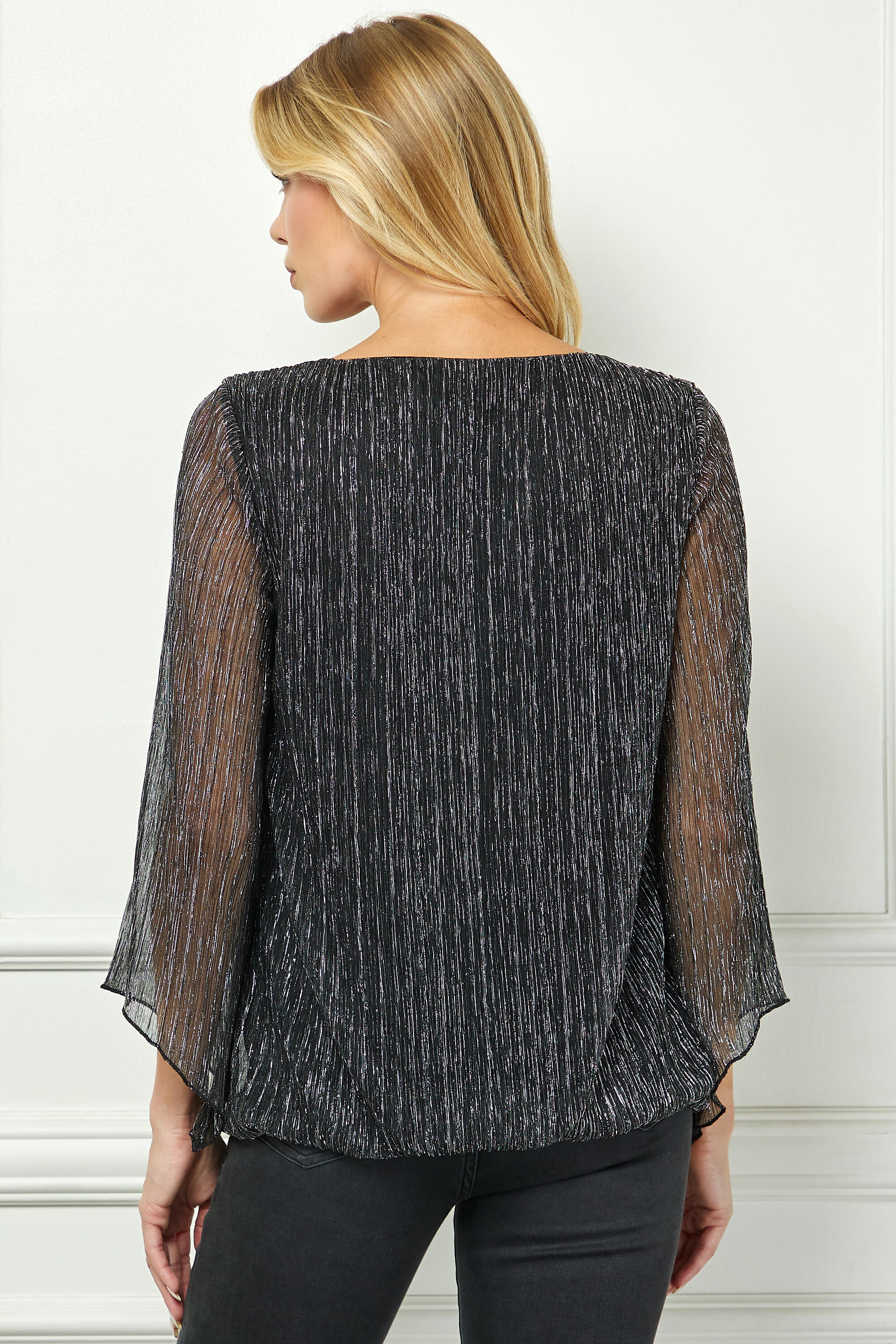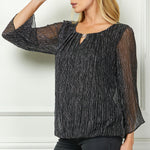 3/4 Flare Sleeve Cutout Neck Bubble Blouse in Black