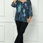 3/4 Flare Sleeve Cutout Neck Bubble Blouse in Blue - Plus