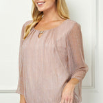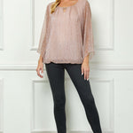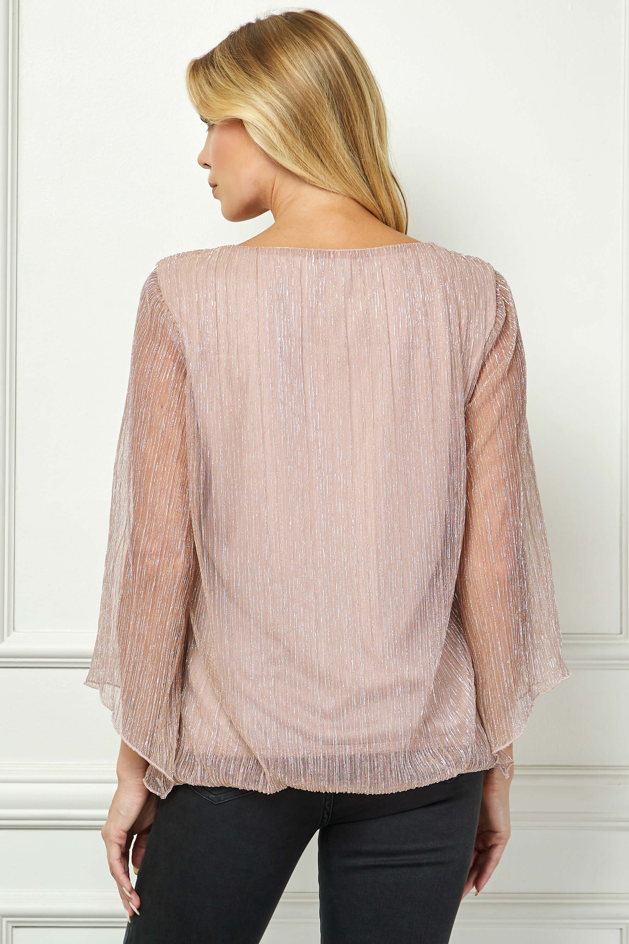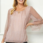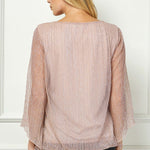 3/4 Flare Sleeve Cutout Neck Bubble Blouse - Pink