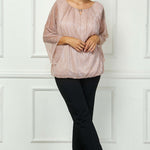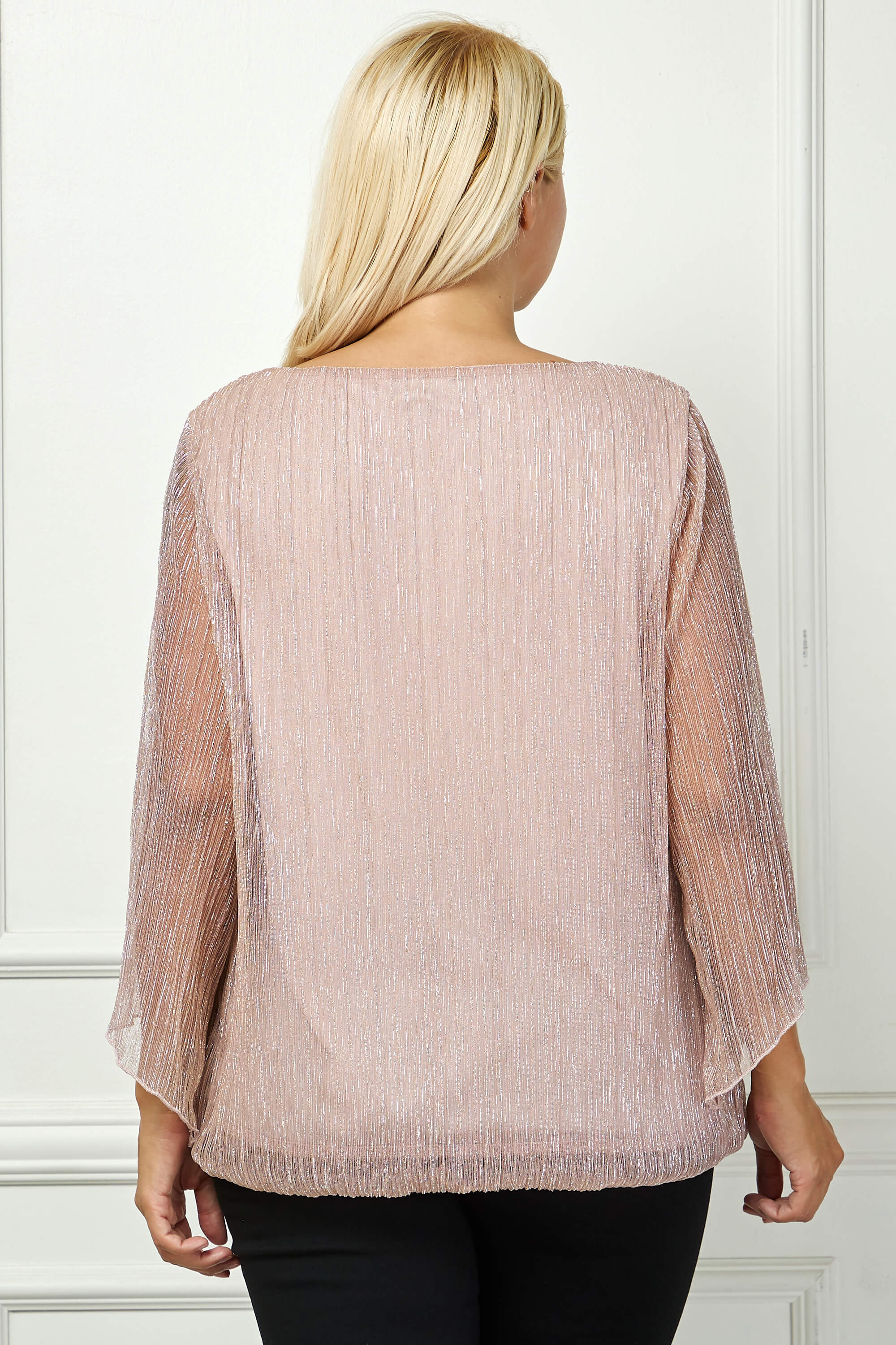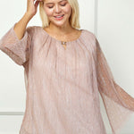 3/4 Flare Sleeve Cutout Neck Bubble Blouse - Pink - Plus