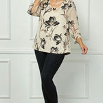 3/4 Flare Sleeve Cutout Trim Front Neck Swing Blouse in Beige - Plus