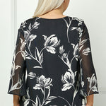 Effortlessly chic and endlessly versatile, this swing blouse is designed to flatter every figure. Crafted with flowing fabric that drapes beautifully, it features 3/4 flare sleeves for a touch of elegance and movement. The cutout trim along the front neckline adds a modern detail, elevating this classic silhouette with subtle sophistication.