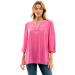 Roz and Ali 3/4 Flare Sleeve Embroidered Yoke Tunic in Pink
