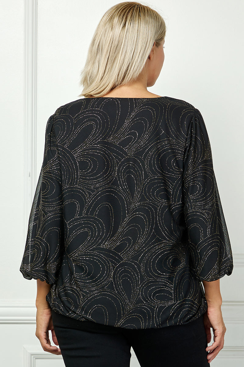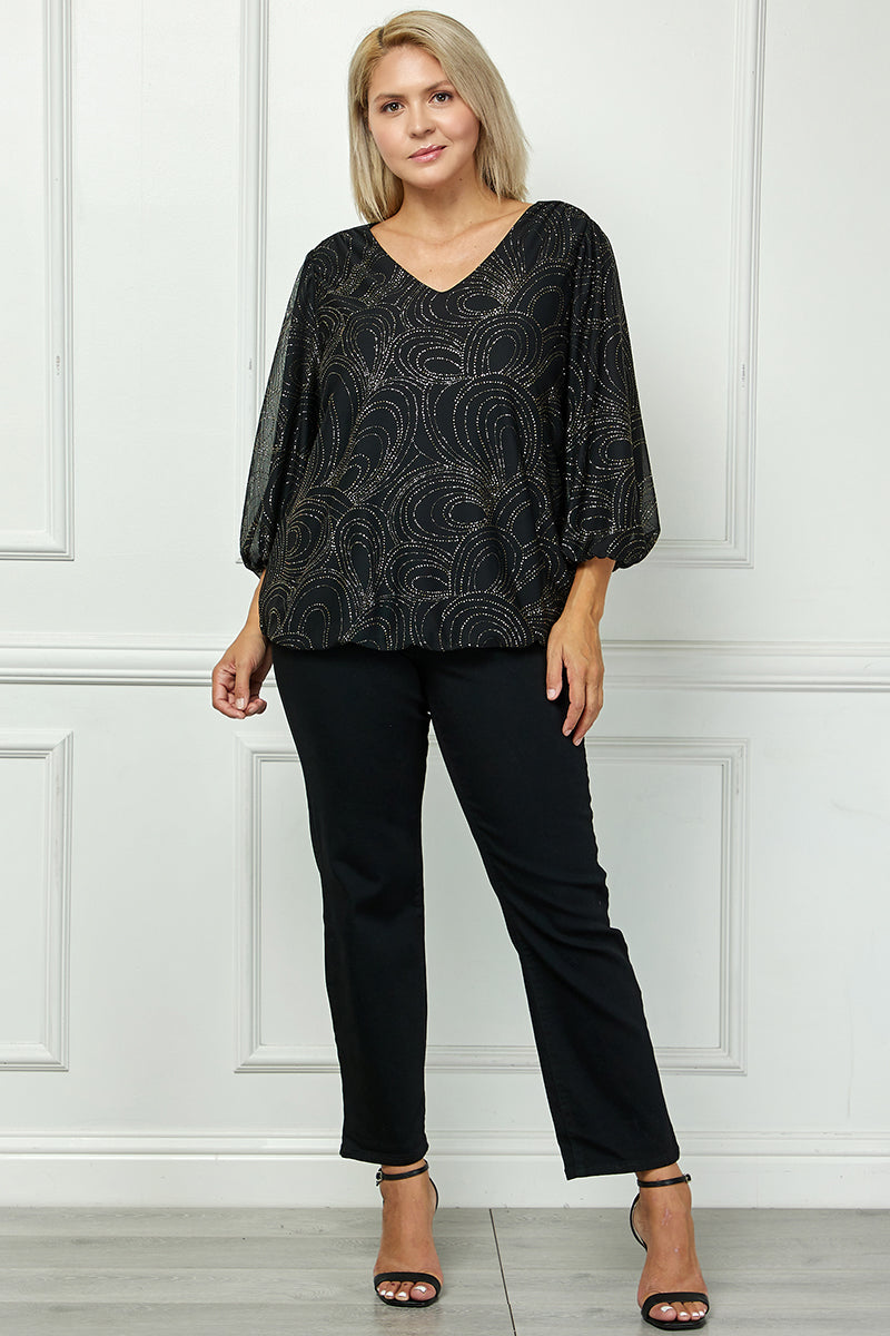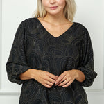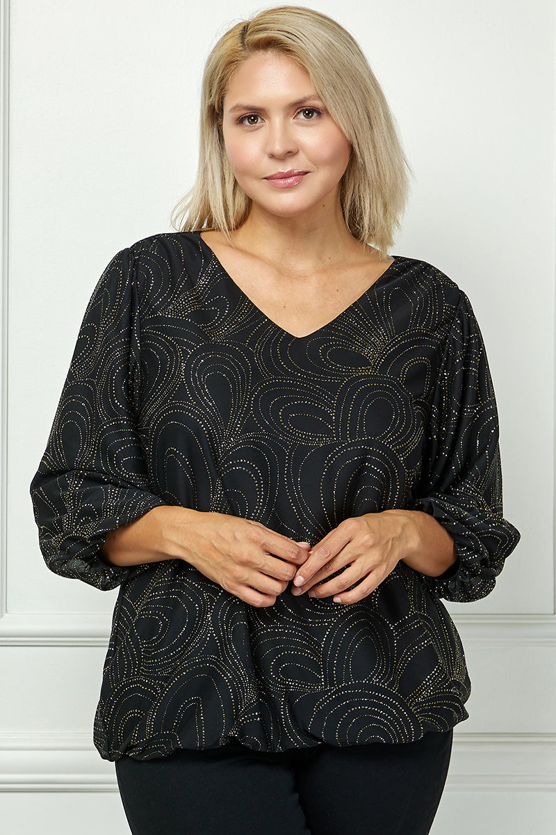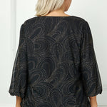 3/4 Puff Sleeve V-Neck Bubble Blouse in Black - Plus