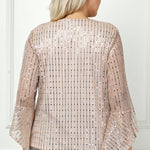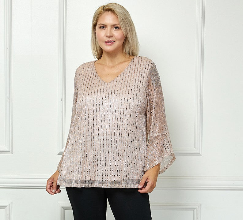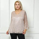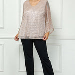 3/4 Ruffle Sleeve V-Neck Blouse - Blush - Plus