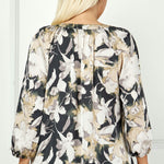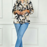 Sleek, modern, and effortlessly versatile—the long sleeve popover blouse is a timeless addition to any wardrobe. Designed in a refined black with rich accents, this blouse makes a sophisticated style statement whether worn at the office or out on the weekend.