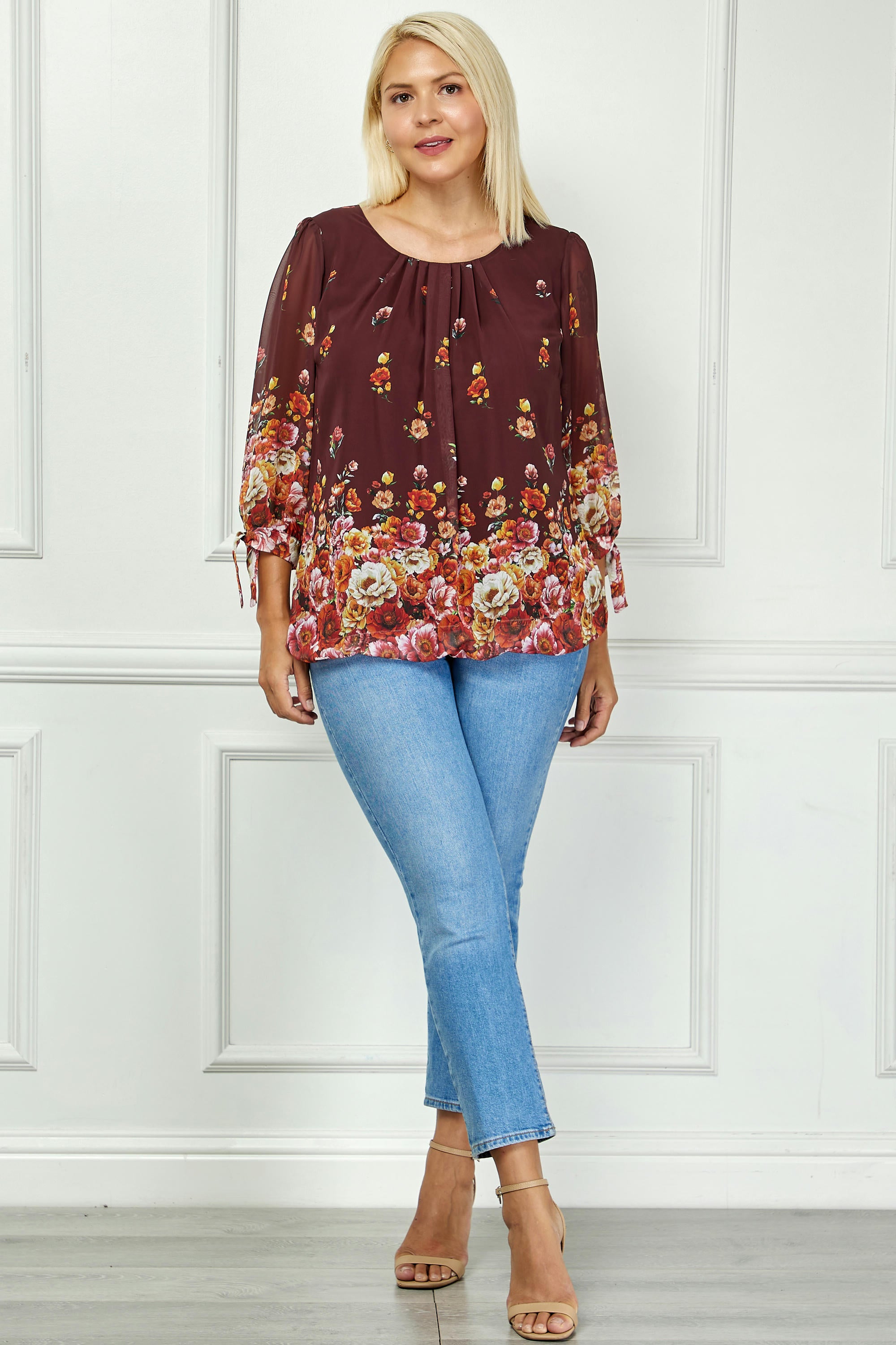 Refined yet effortlessly wearable, this blouse combines feminine details with a relaxed, flattering fit. The softly pleated neckline adds a touch of sophistication, while the tie-accented 3/4 sleeves lend a hint of charm and versatility.
